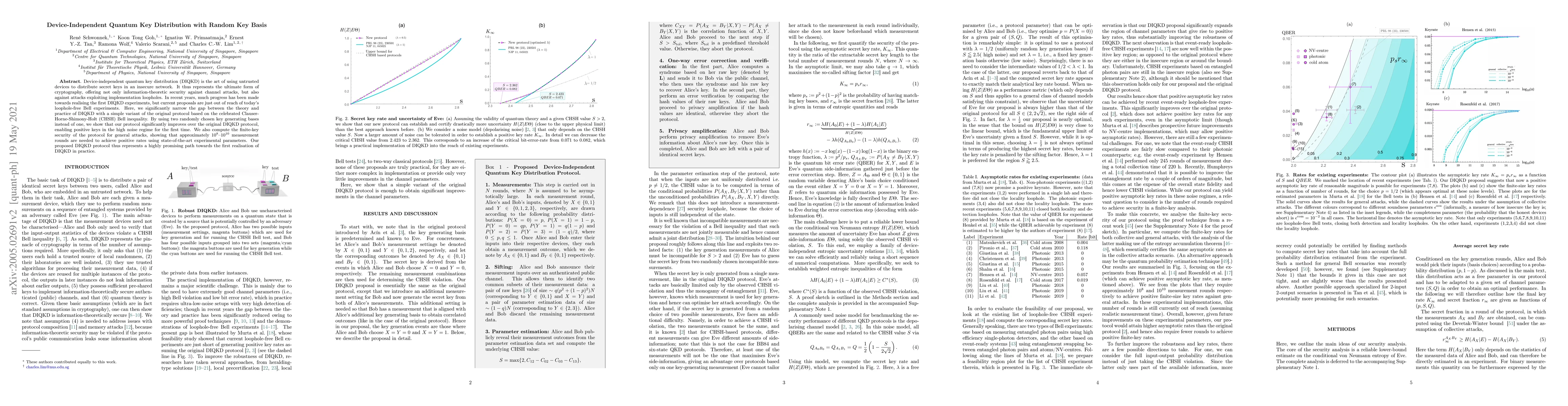 Researchers develop a simplified protocol for device-independent quantum key distribution, enabling positive keys in high noise regimes and requiring approximately 1E8 to 1E10 measurement rounds for secure operation.