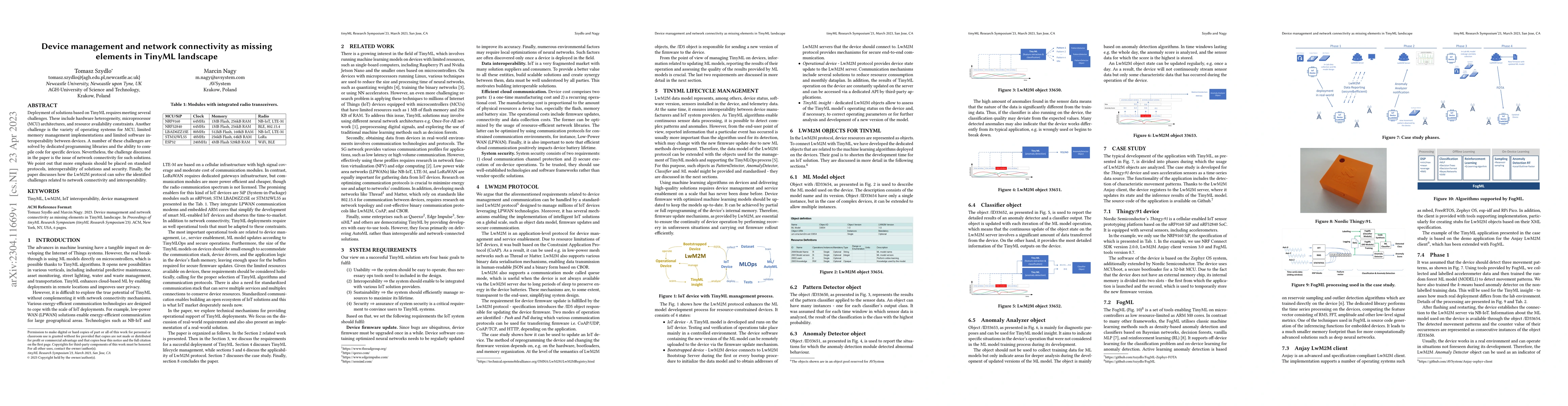 This paper addresses the challenges of network connectivity and device management in TinyML, emphasizing the need for standard protocols, interoperability, and security. It highlights the potential of the LwM2M protocol to enhance connectivity and interoperability among diverse TinyML devices.