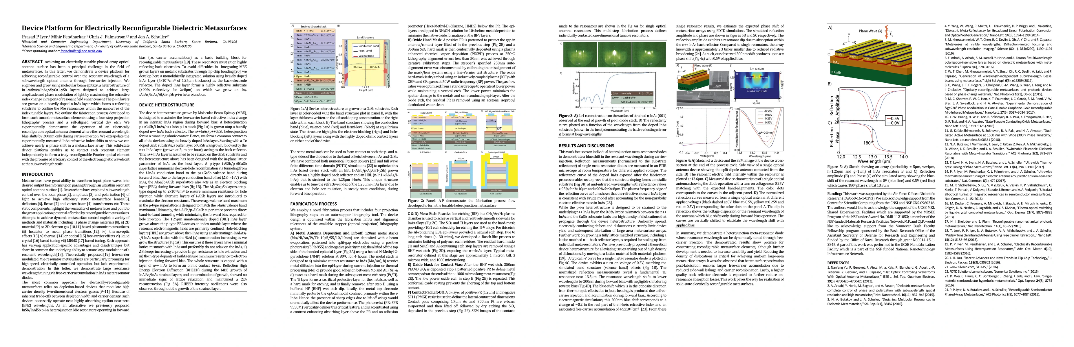 This paper presents a device platform for electrically tunable dielectric metasurfaces using a heterostructure grown via molecular beam epitaxy, enabling large amplitude and phase modulation through free-carrier injection. The platform allows for independent control of each metasurface element, promising arbitrary electromagnetic wavefront manipulation at subwavelength scales.