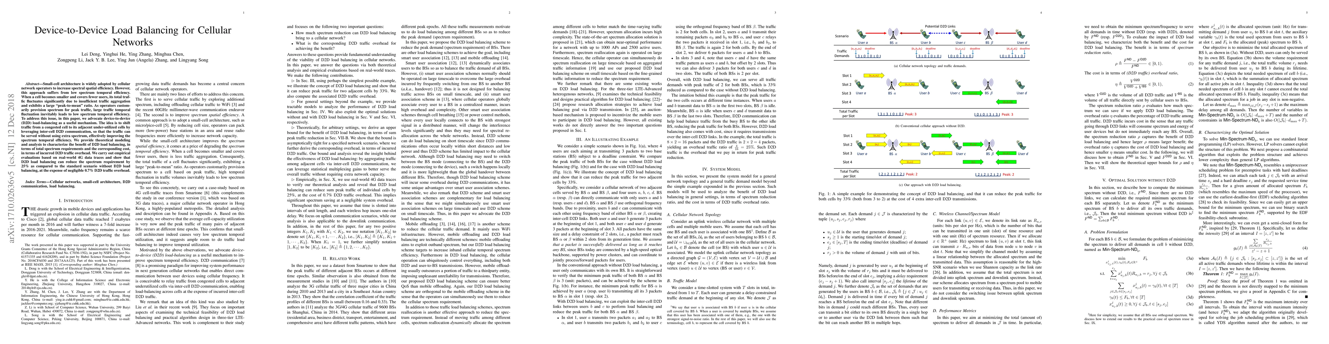 Small-cell architecture is widely adopted by cellular network operators to increase network capacity. By reducing the size of cells, operators can pack more (low-power) base stations in an area to better serve the growing demands, without causing extra interference. However, this approach suffers from low spectrum temporal efficiency. When a cell becomes smaller and covers fewer users, its total traffic fluctuates significantly due to insufficient traffic aggregation and exhibiting a large "peak-to-mean" ratio. As operators customarily provision spectrum for peak traffic, large traffic temporal fluctuation inevitably leads to low spectrum temporal efficiency. In this paper, we advocate device-to-device (D2D) load-balancing as a useful mechanism to address the fundamental drawback of small-cell architecture. The idea is to shift traffic from a congested cell to its adjacent under-utilized cells by leveraging inter-cell D2D communication, so that the traffic can be served without using extra spectrum, effectively improving the spectrum temporal efficiency. We provide theoretical modeling and analysis to characterize the benefit of D2D load balancing, in terms of total spectrum requirements of all individual cells. We also derive the corresponding cost, in terms of incurred D2D traffic overhead. We carry out empirical evaluations based on real-world 4G data traces to gauge the benefit and cost of D2D load balancing under practical settings. The results show that D2D load balancing can reduce the spectrum requirement by 25% as compared to the standard scenario without D2D load balancing, at the expense of negligible 0.7% D2D traffic overhead.