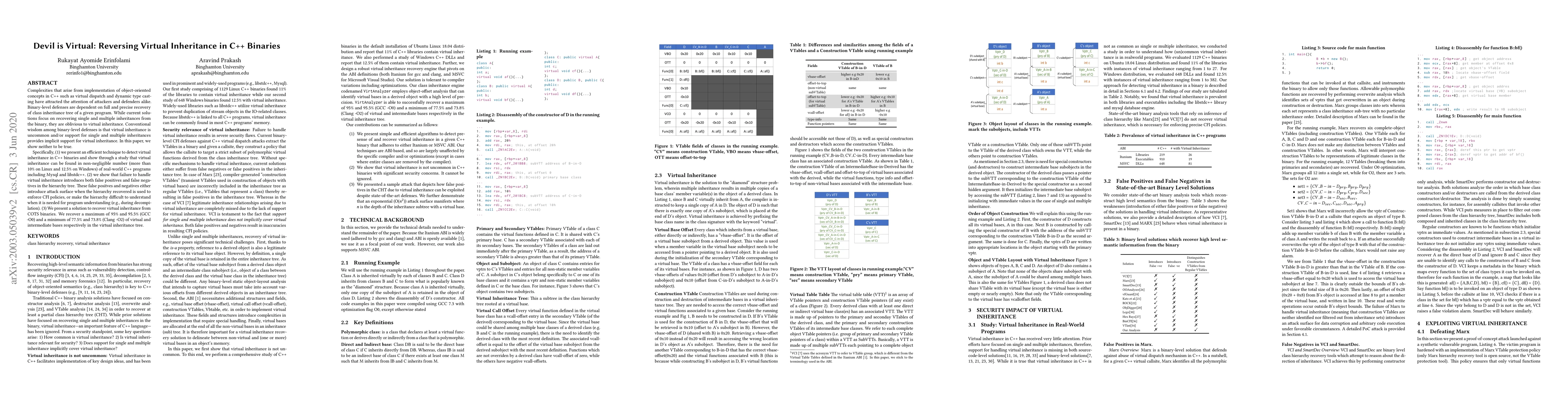 Researchers found that virtual inheritance is more common than thought in C++ binaries, leading to false positives and negatives in hierarchy recovery and introducing attack surfaces or making understanding harder.
