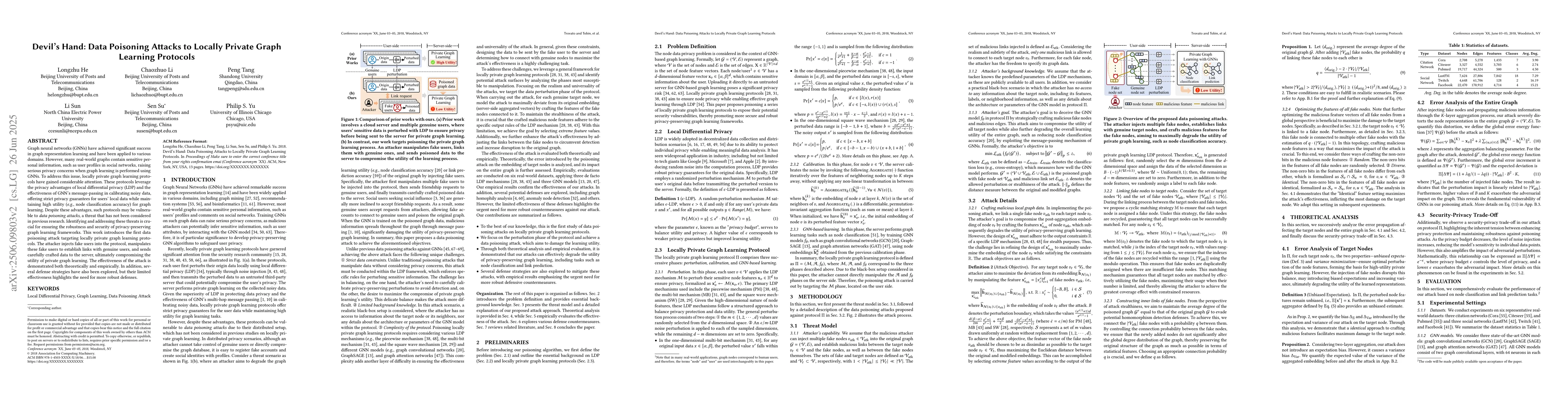 Researchers discovered a vulnerability in locally private graph learning protocols to data poisoning attacks, where attackers can compromise utility while maintaining strict privacy guarantees.