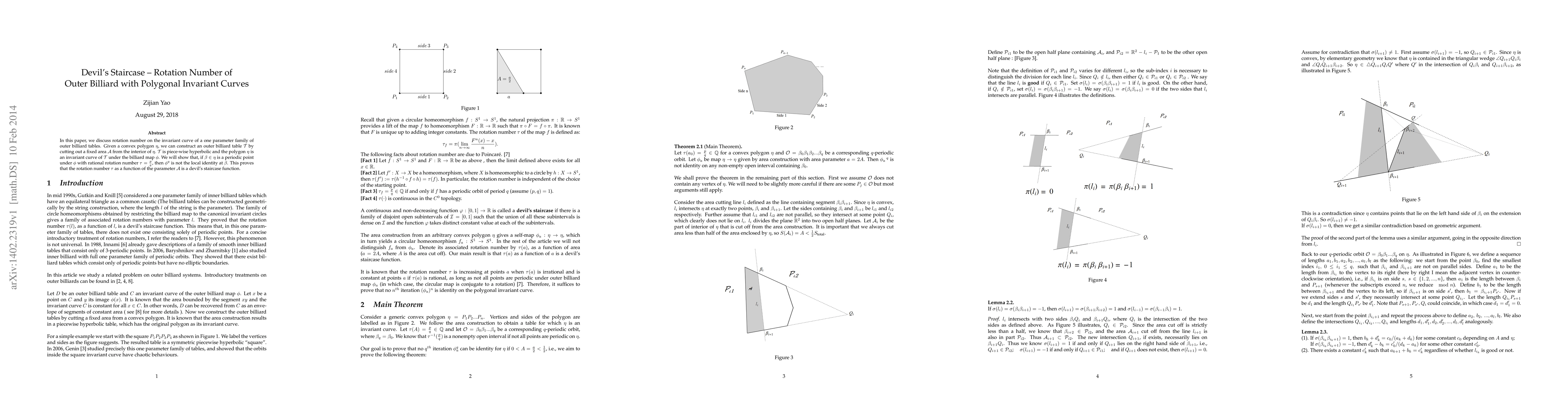 This paper investigates the rotation number on invariant curves of a one-parameter family of outer billiard tables derived from convex polygons. It demonstrates that for periodic points with rational rotation numbers, the $n$th iteration of the billiard map is not locally the identity, proving the rotation number function is a devil's staircase.