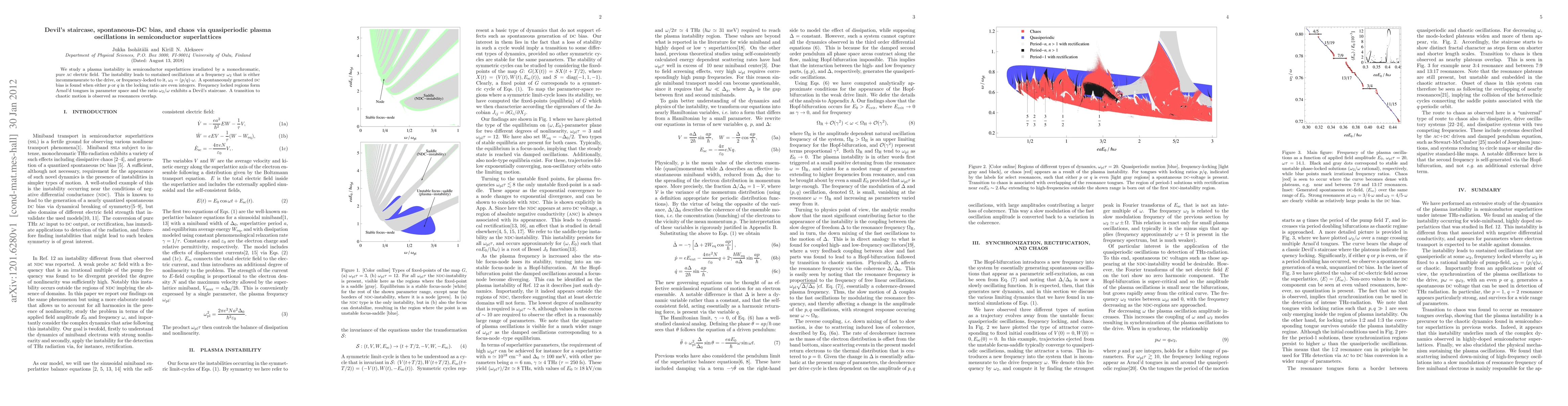 A study on semiconductor superlattices reveals the emergence of chaotic motion via quasiperiodic plasma oscillations in response to AC electric field irradiation, with a Devil's staircase pattern observed.