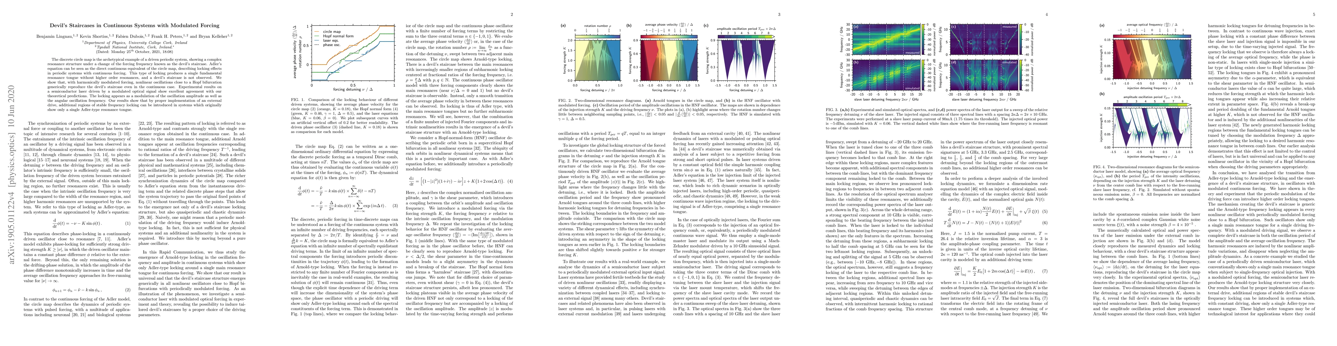 The paper explores the reproduction of the 'devil's staircase' phenomenon, typically seen in discrete systems, in continuous systems with modulated forcing. Using a semiconductor laser as an example, the research demonstrates that harmonically modulated forcing near a Hopf bifurcation can generate a devil's staircase, introducing additional stable frequency locking regions in systems originally exhibiting only a single Adler-type resonance tongue. Experimental results align with theoretical predictions.