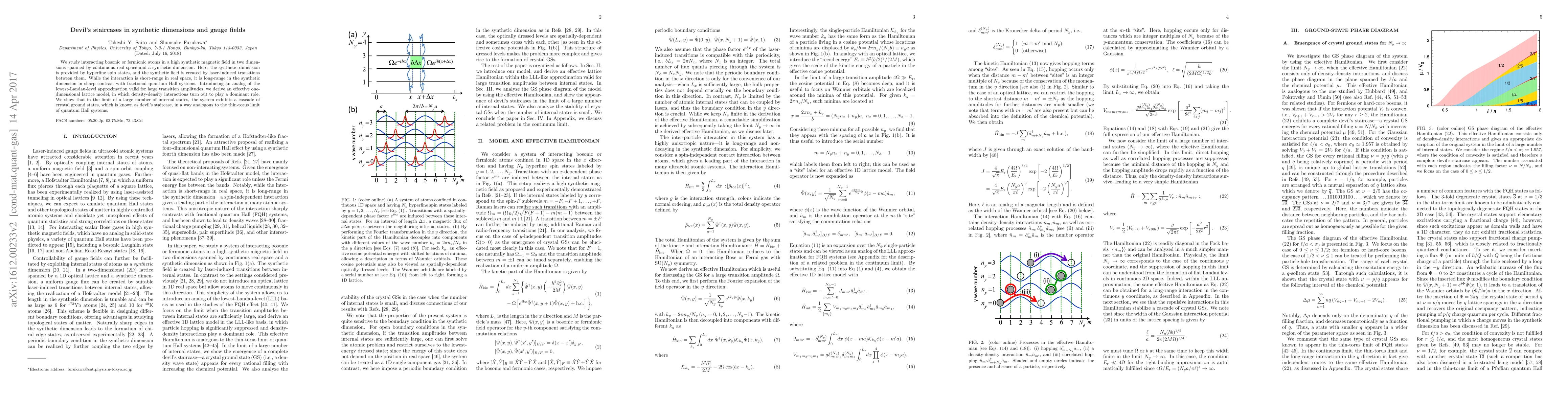 This paper investigates interacting bosonic or fermionic atoms in a synthetic high magnetic field, revealing a cascade of crystal ground states known as devil's staircases due to density-density interactions in a synthetic dimension created by laser-induced spin transitions. The study derives an effective one-dimensional lattice model that highlights the dominance of long-range interactions in the synthetic dimension.