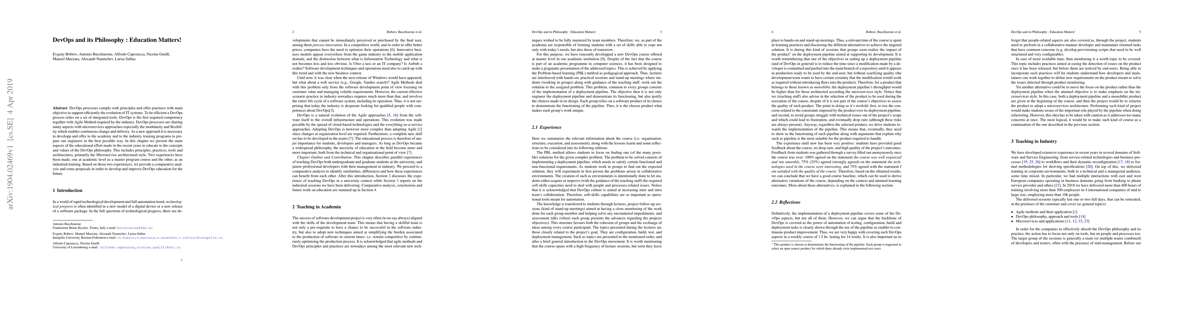 This paper discusses the importance of DevOps competency in IT systems evolution and highlights the need for tailored educational programs to teach its principles, practices, and tools. It presents comparative analyses from both academic and industrial training experiences to propose improvements for future DevOps education.