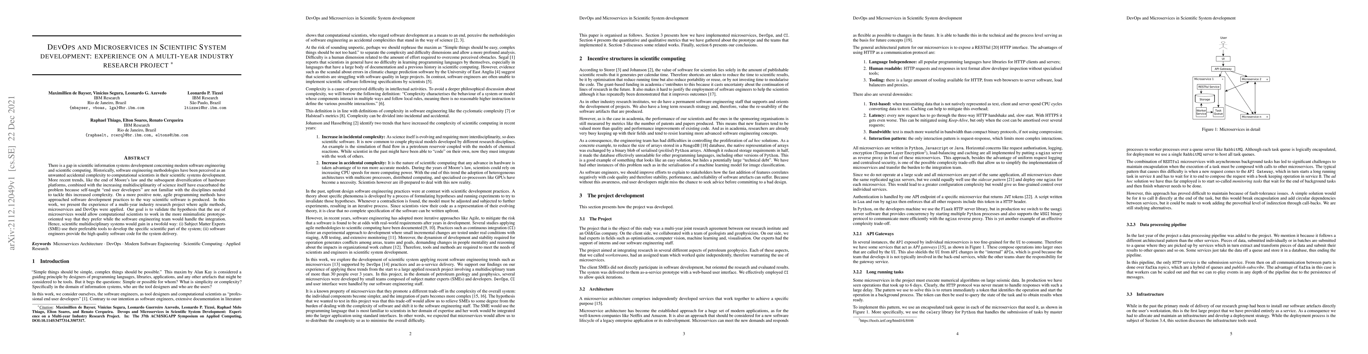 Researchers successfully applied agile methods, microservices, and DevOps to a scientific system development project, validating that microservices enable computational scientists to work on the core scientific aspects while software engineers handle integration, improving system development efficiency.