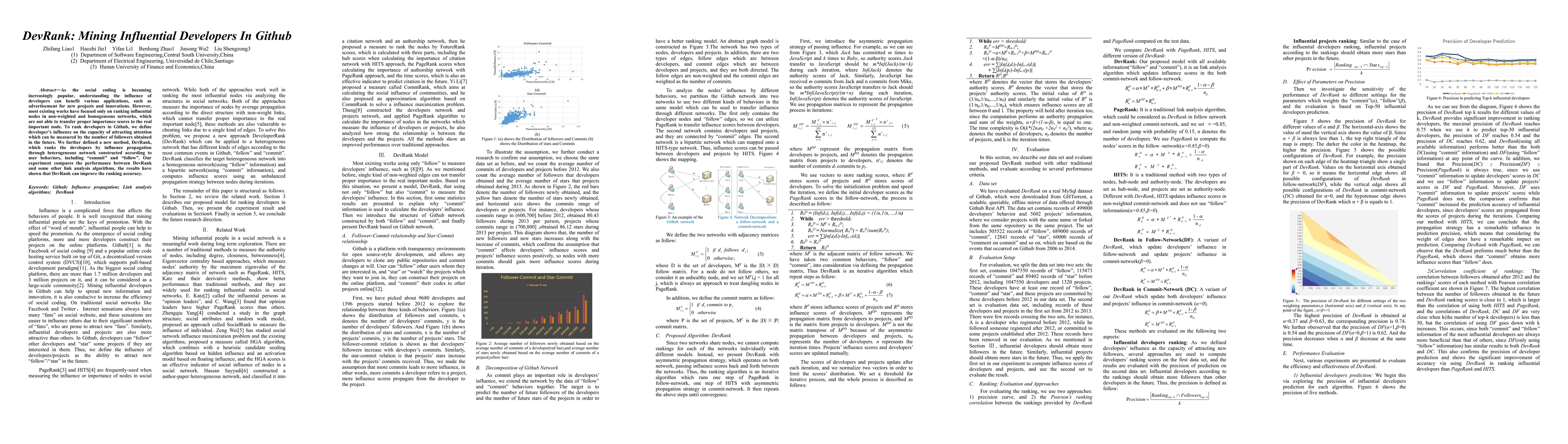 A new method called DevRank ranks developers in Github based on their influence propagation through a heterogeneous network constructed from user behaviors like commits and follows, improving ranking accuracy.