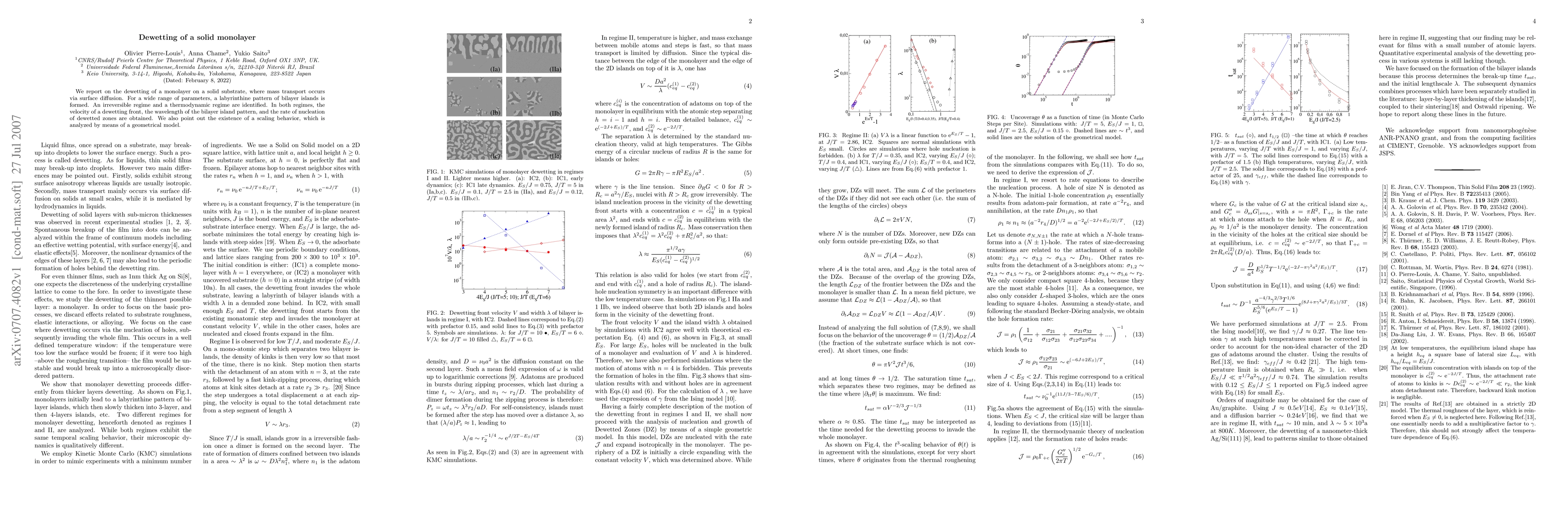 Researchers study how a monolayer on a solid substrate breaks into islands through surface diffusion, revealing two regimes and scaling behavior.