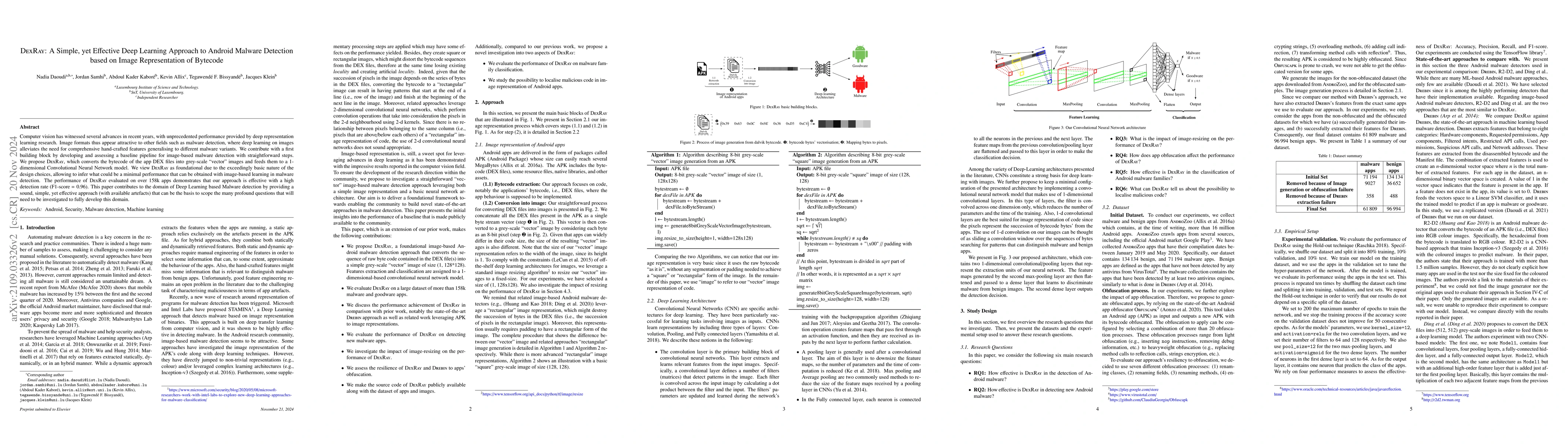 DexRay proposes a straightforward deep learning approach for Android malware detection by converting bytecode into grey-scale images and using a 1-D CNN for analysis. The method achieves a high detection rate (F1-score=0.96) and serves as a foundational model for exploring image-based learning in malware detection.