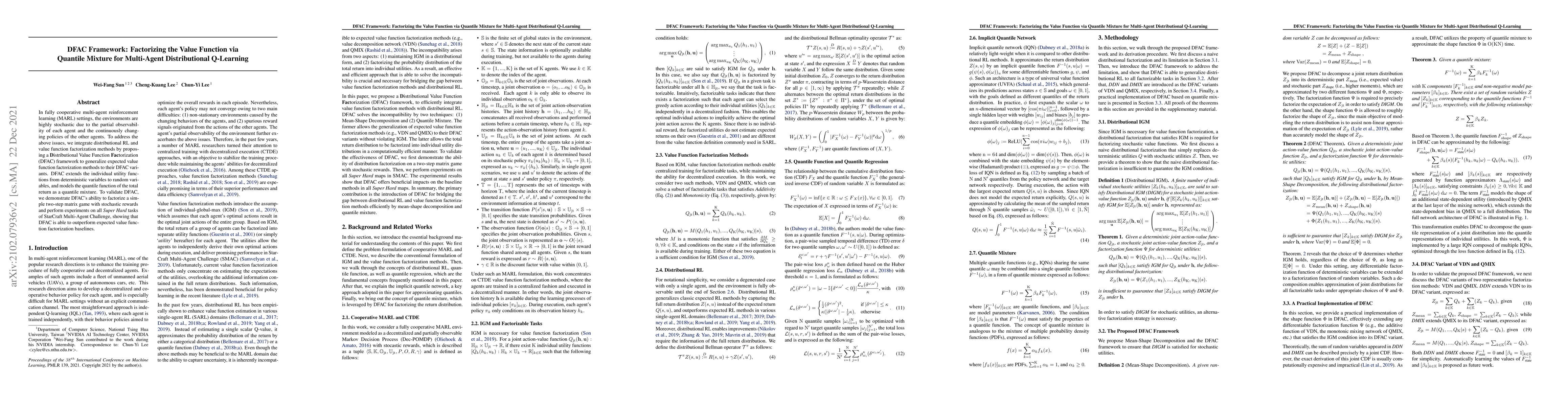 A new framework called DFAC is proposed to improve multi-agent reinforcement learning by factorizing value functions into quantile mixtures, enabling better handling of stochastic environments. The framework outperforms existing baselines in complex tasks like StarCraft Multi-Agent Challenge.