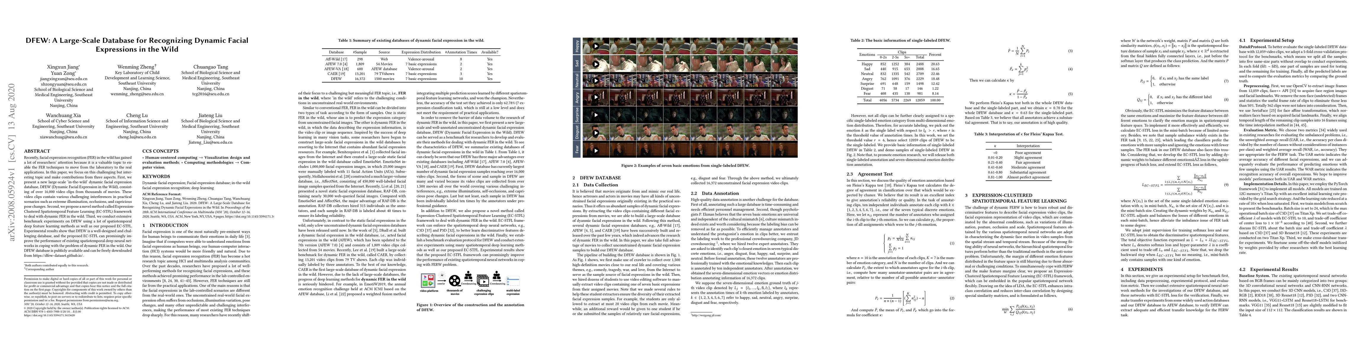 This paper introduces DFEW, a large-scale dynamic facial expression database with over 16,000 video clips from movies, designed to tackle real-world challenges in facial expression recognition. It also proposes an EC-STFL framework for improved dynamic FER and demonstrates its effectiveness through extensive experiments.
