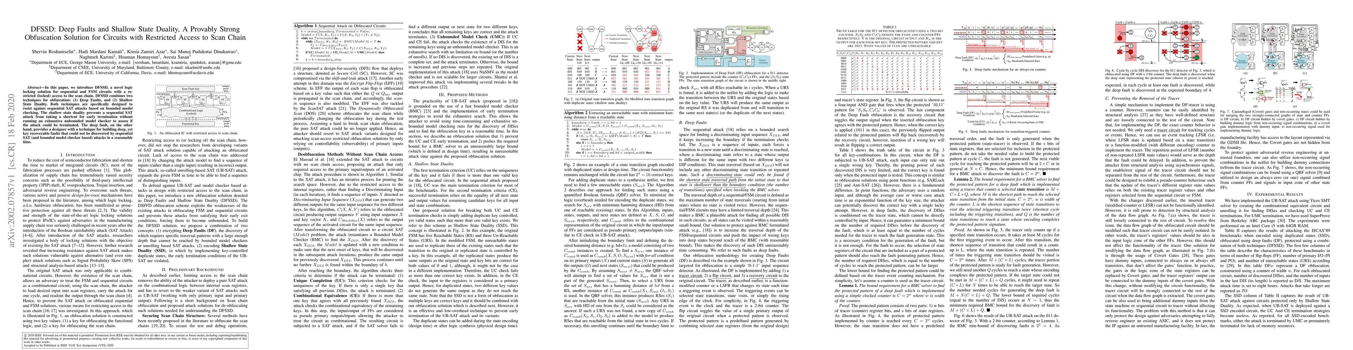 In this paper, we introduce DFSSD, a novel logic locking solution for sequential and FSM circuits with a restricted (locked) access to the scan chain. DFSSD combines two techniques for obfuscation: (1) Deep Faults, and (2) Shallow State Duality. Both techniques are specifically designed to resist against sequential SAT attacks based on bounded model checking. The shallow state duality prevents a sequential SAT attack from taking a shortcut for early termination without running an exhaustive unbounded model checker to assess if the attack could be terminated. The deep fault, on the other hand, provides a designer with a technique for building deep, yet key recoverable faults that could not be discovered by sequential SAT (and bounded model checker based) attacks in a reasonable time.