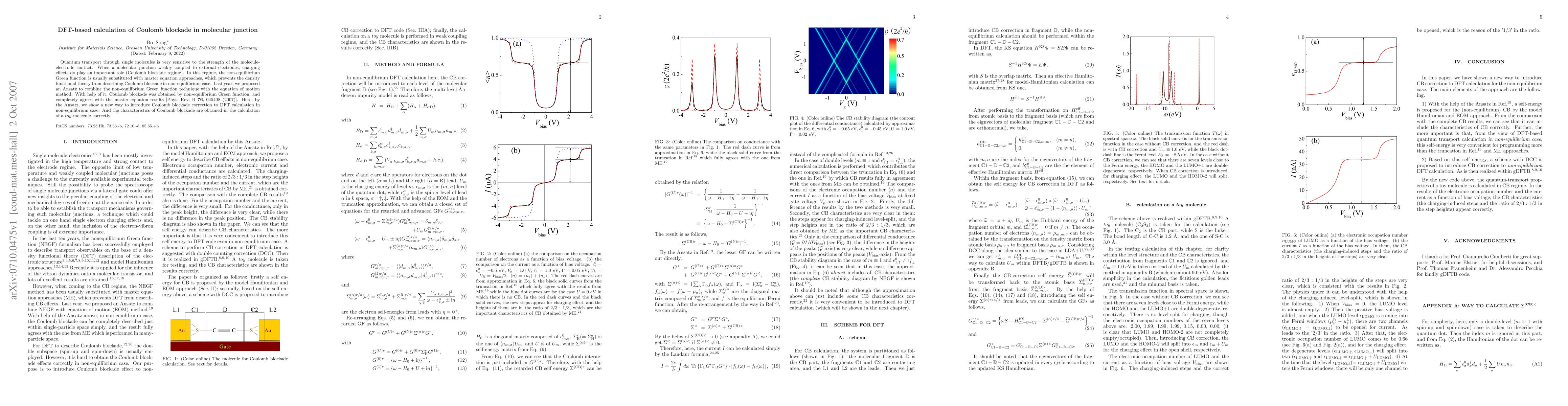 Quantum transport through single molecules is very sensitive to the strength of the molecule-electrode contact. When a molecular junction weakly coupled to external electrodes, charging effects do play an important role (Coulomb blockade regime). In this regime, the non-equilibrium Green function is usually substituted with master equation approaches, which prevents the density functional theory from describing Coulomb blockade in non-equilibrium case. Last year, we proposed an Ansatz to combine the non-equilibrium Green function technique with the equation of motion method. With help of it, Coulomb blockade was obtained by non-equilibrium Green function, and completely agrees with the master equation results [Phys. Rev. B \textbf{76}, 045408 (2007)]. Here, by the Ansatz, we show a new way to introduce Coulomb blockade correction to DFT calculation in non-equilibrium case. And the characteristics of Coulomb blockade are obtained in the calculation of a $toy$ molecule correctly.