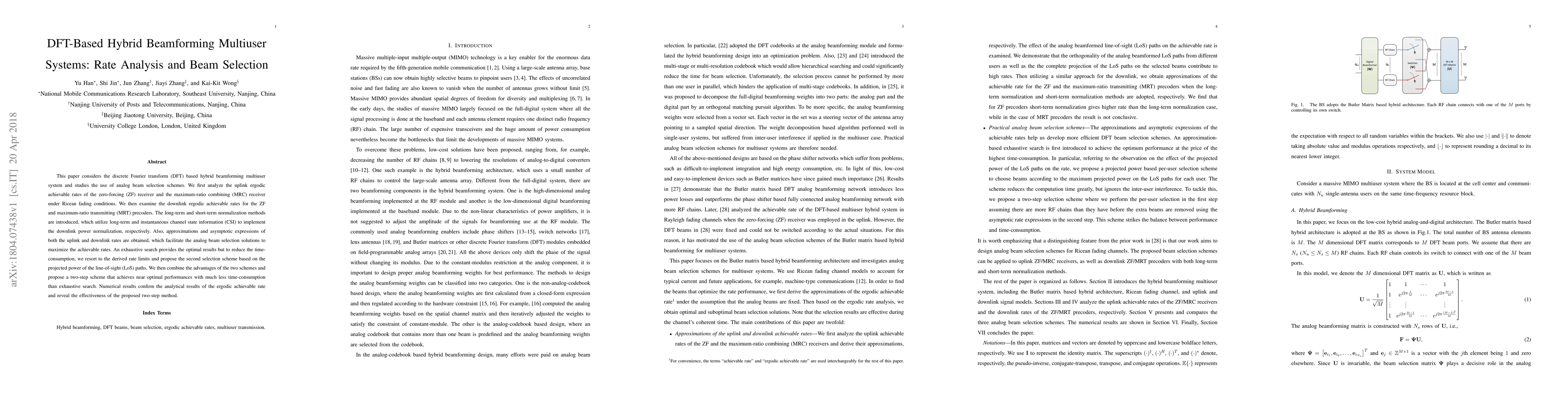 This paper analyzes the rates of hybrid beamforming multiuser systems using DFT-based methods and proposes a two-step scheme to maximize achievable rates while reducing computational time.