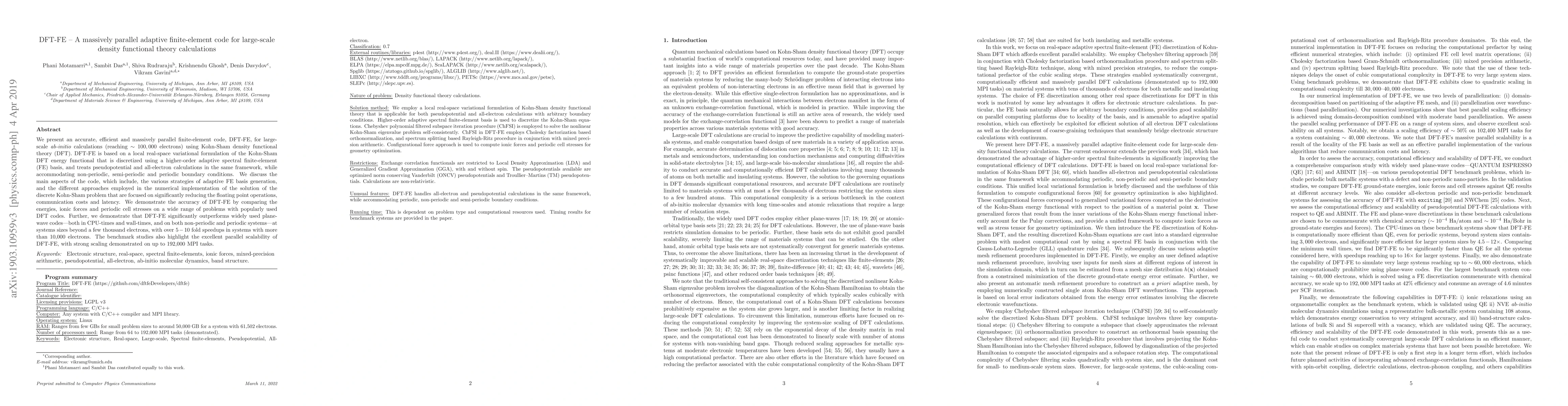 Vikram Gavini, Sambit Das, David M. Rogers et al.