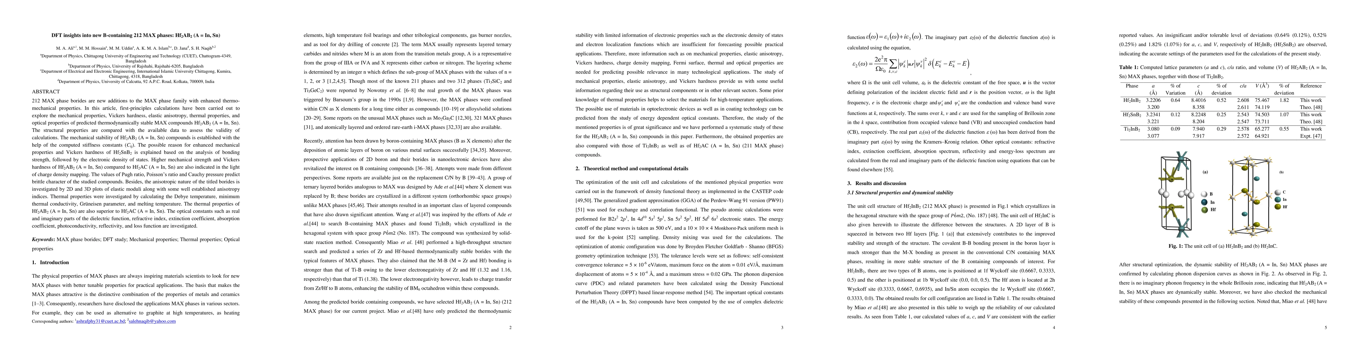 This paper uses DFT calculations to investigate the mechanical, thermal, and optical properties of new Hf2AB2 (A = In, Sn) MAX phase borides, finding enhanced thermo-mechanical properties, higher Vickers hardness, and superior thermal properties compared to Hf2AC counterparts. The study also explores elastic anisotropy and electronic density of states to explain the observed mechanical strengths.