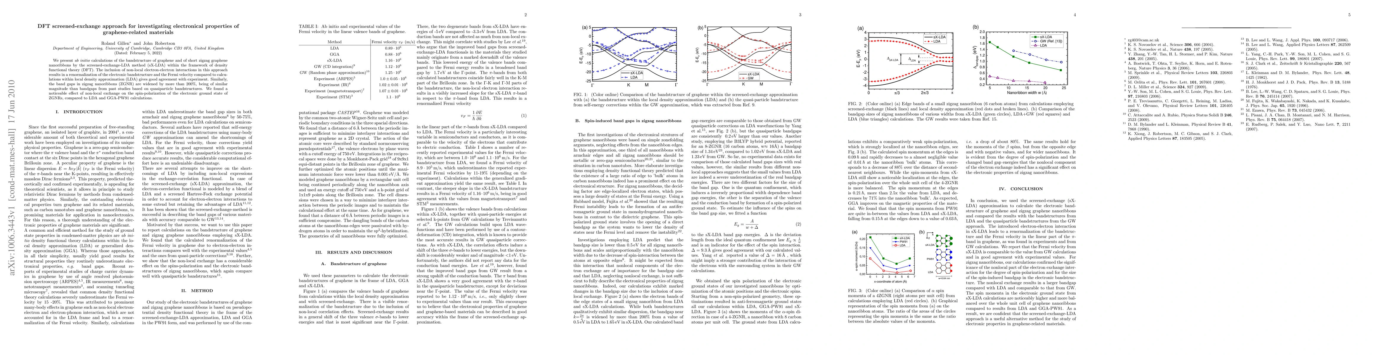 We present ab initio calculations of the bandstructure of graphene and of short zigzag graphene nanoribbons by the screened-exchange-LDA method (sX-LDA) within the framework of density functional theory (DFT). The inclusion of non-local electron-electron interactions in this approach results in a renormalization of the electronic bandstructure and the Fermi velocity compared to calculations within local density approximation (LDA) gives good agreement with experiment. Similarly, the band gaps in zigzag nanoribbons (ZGNR) are widened by more than 200%, being of similar magnitude than bandgaps from past studies based on quasiparticle bandstructures. We found a noticeable effect of non-local exchange on the spin-polarization of the electronic ground state of ZGNRs, compared to LDA and GGA-PW91 calculations.