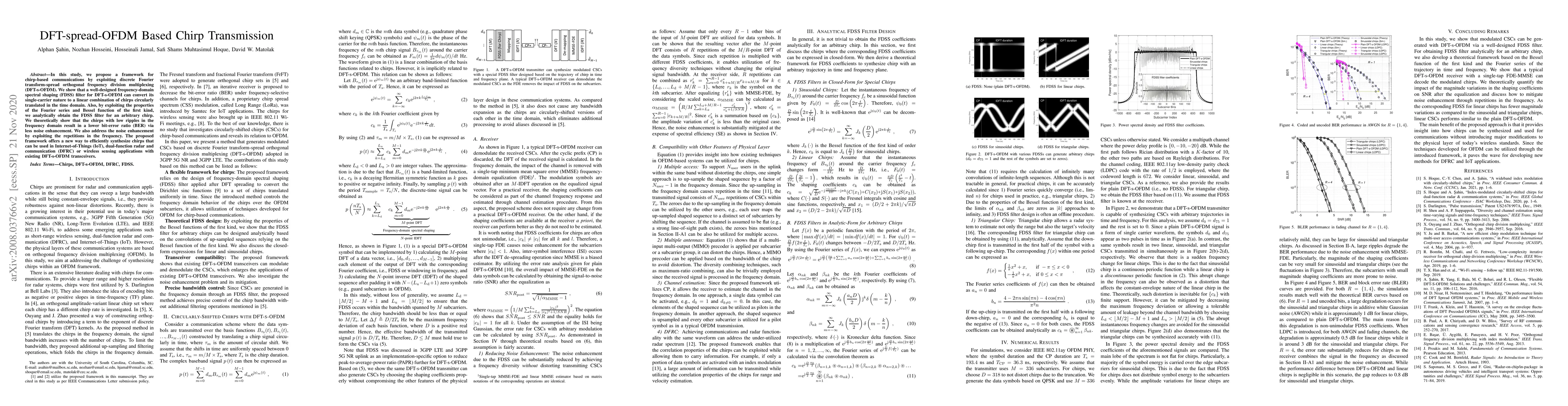 This paper proposes a DFT-spread-OFDM framework for chirp-based communications, utilizing a frequency-domain spectral shaping filter to convert single-carrier OFDM into chirps. The study demonstrates that chirps with low frequency domain ripples enhance communication efficiency by reducing noise enhancement, thus improving bit-error ratio.