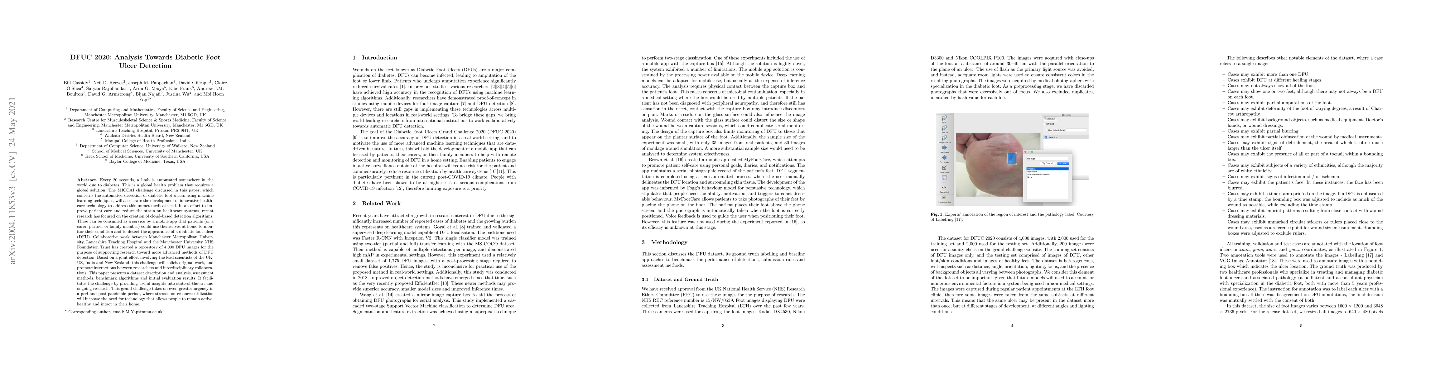 Every 20 seconds, a limb is amputated somewhere in the world due to diabetes. This is a global health problem that requires a global solution. The MICCAI challenge discussed in this paper, which concerns the automated detection of diabetic foot ulcers using machine learning techniques, will accelerate the development of innovative healthcare technology to address this unmet medical need. In an effort to improve patient care and reduce the strain on healthcare systems, recent research has focused on the creation of cloud-based detection algorithms. These can be consumed as a service by a mobile app that patients (or a carer, partner or family member) could use themselves at home to monitor their condition and to detect the appearance of a diabetic foot ulcer (DFU). Collaborative work between Manchester Metropolitan University, Lancashire Teaching Hospital and the Manchester University NHS Foundation Trust has created a repository of 4,000 DFU images for the purpose of supporting research toward more advanced methods of DFU detection. Based on a joint effort involving the lead scientists of the UK, US, India and New Zealand, this challenge will solicit original work, and promote interactions between researchers and interdisciplinary collaborations. This paper presents a dataset description and analysis, assessment methods, benchmark algorithms and initial evaluation results. It facilitates the challenge by providing useful insights into state-of-the-art and ongoing research. This grand challenge takes on even greater urgency in a peri and post-pandemic period, where stresses on resource utilization will increase the need for technology that allows people to remain active, healthy and intact in their home.