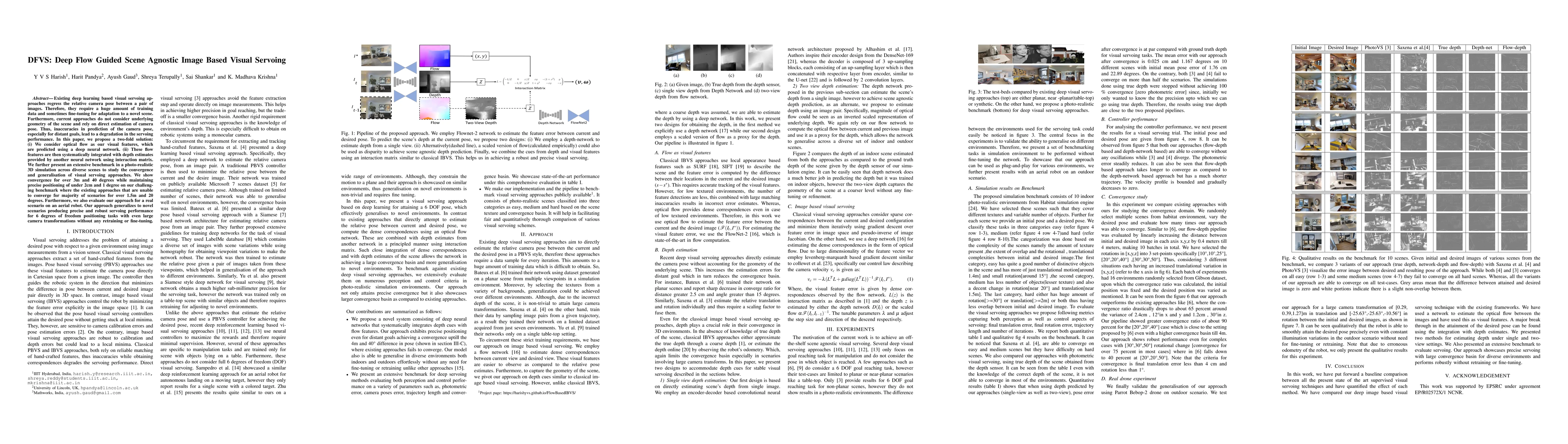 This paper proposes a novel deep learning-based visual servoing method that leverages optical flow and depth estimates to achieve scene-agnostic image-based visual servoing. The approach demonstrates superior convergence and generalizability across diverse simulated and real-world scenarios, outperforming existing methods without requiring retraining or fine-tuning.