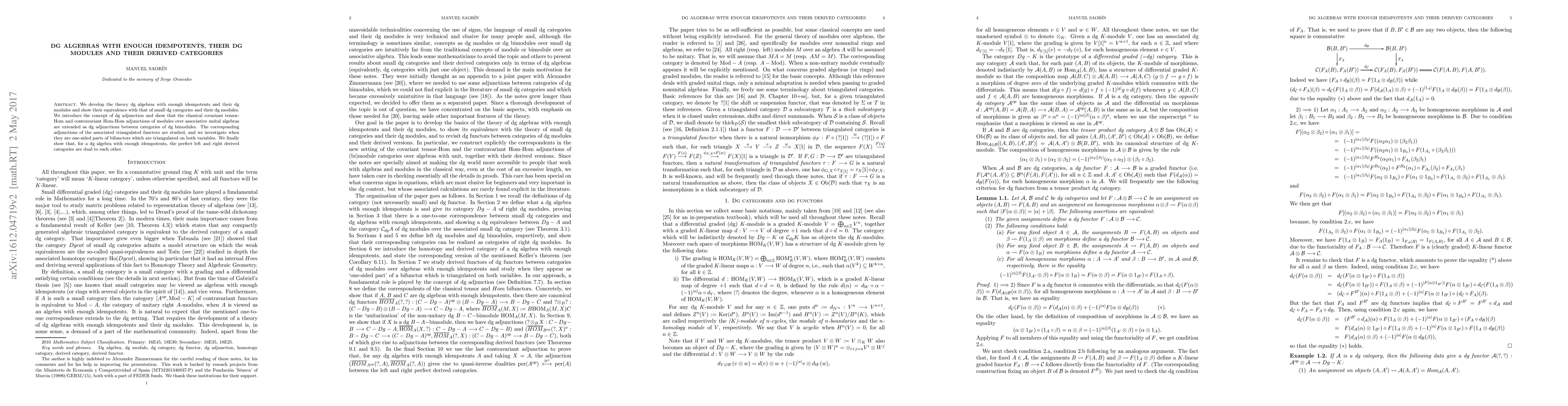 Summary: This paper develops the theory of dg algebras with enough idempotents and their dg modules, establishing their equivalence with small dg categories. It introduces dg adjunctions, extends classical module adjunctions to dg contexts, and proves that perfect derived categories of such dg algebras are dual to each other.