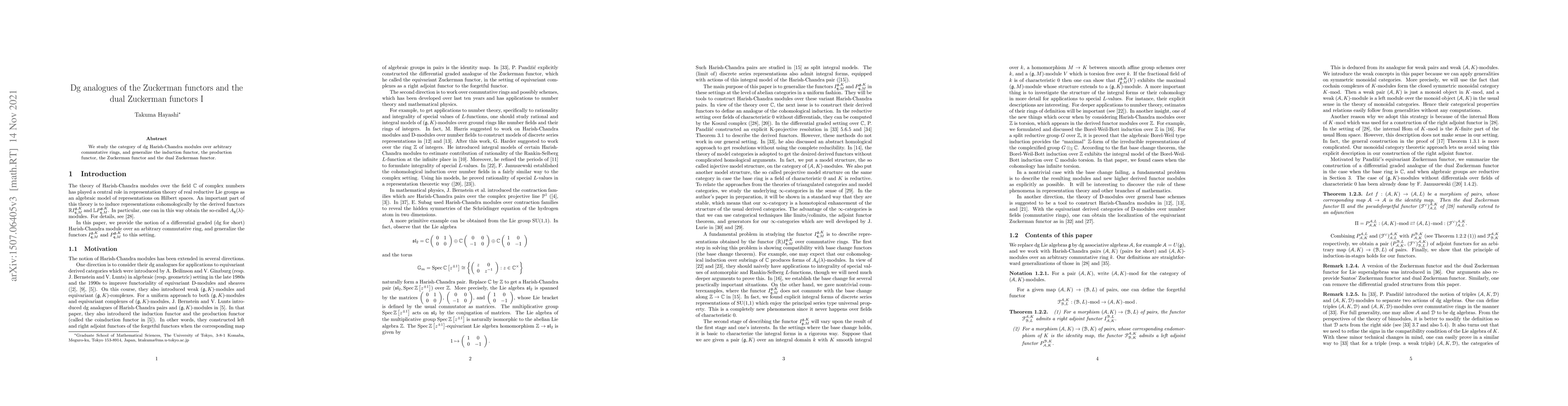 Summary: This paper constructs dg analogues of key functors in the category of dg Harish-Chandra modules, including the induction, production, Zuckerman, and dual Zuckerman functors, over any commutative ring. The work aims to extend traditional functors into the differential graded setting.