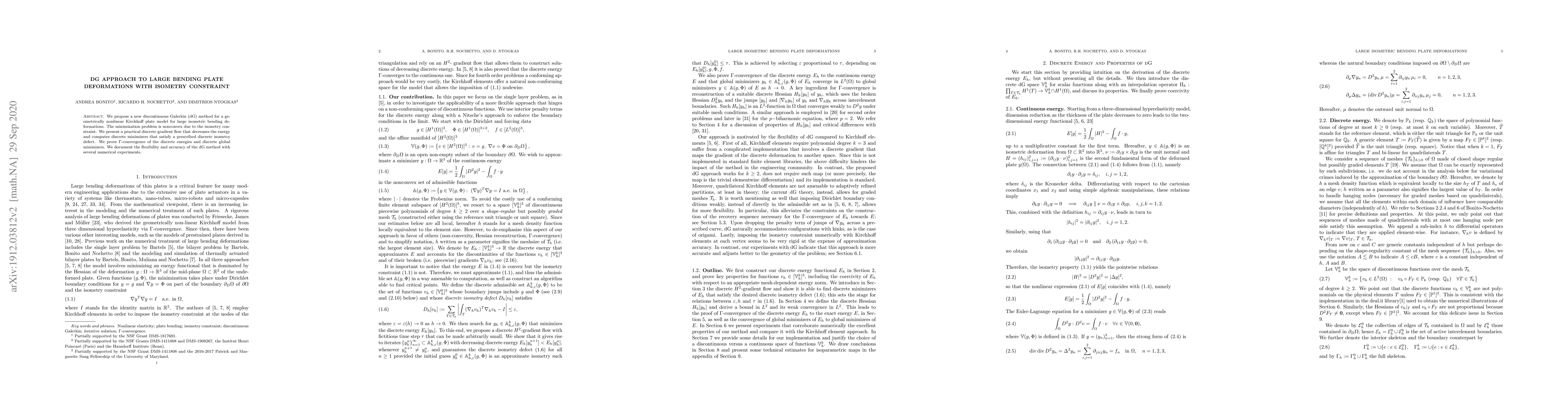 We propose a new discontinuous Galerkin (dG) method for a geometrically nonlinear Kirchhoff plate model for large isometric bending deformations. The minimization problem is nonconvex due to the isometry constraint. We present a practical discrete gradient flow that decreases the energy and computes discrete minimizers that satisfy a prescribed discrete isometry defect. We prove $\Gamma$-convergence of the discrete energies and discrete global minimizers. We document the flexibility and accuracy of the dG method with several numerical experiments.