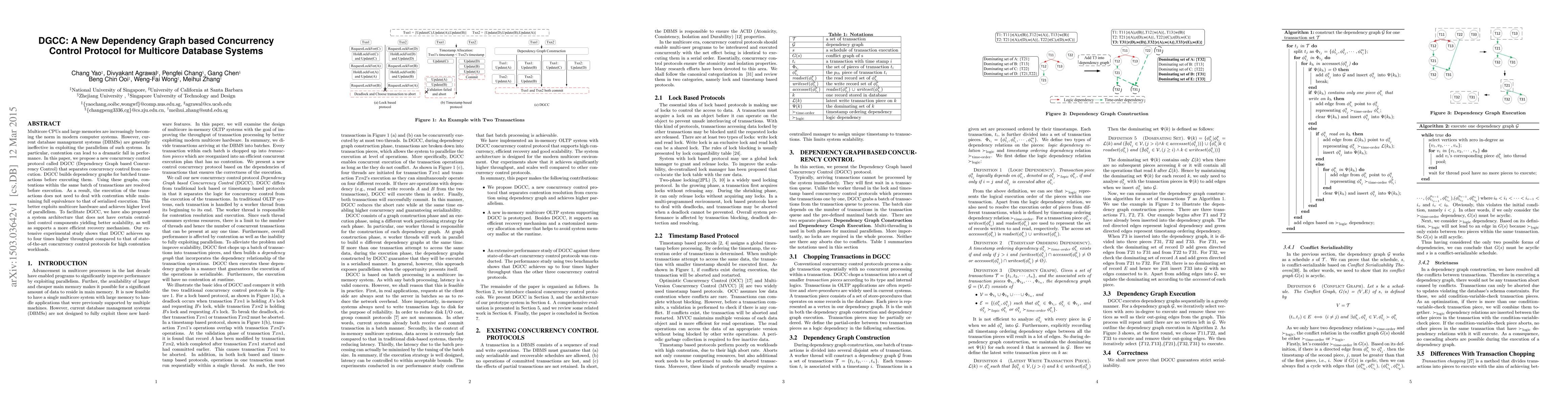 The paper introduces DGCC, a new concurrency control protocol for multicore database systems that builds dependency graphs to resolve contentions before transaction execution, thus achieving higher parallelism and up to four times higher throughput compared to existing protocols. The proposed system architecture enhances scalability and recovery efficiency.
