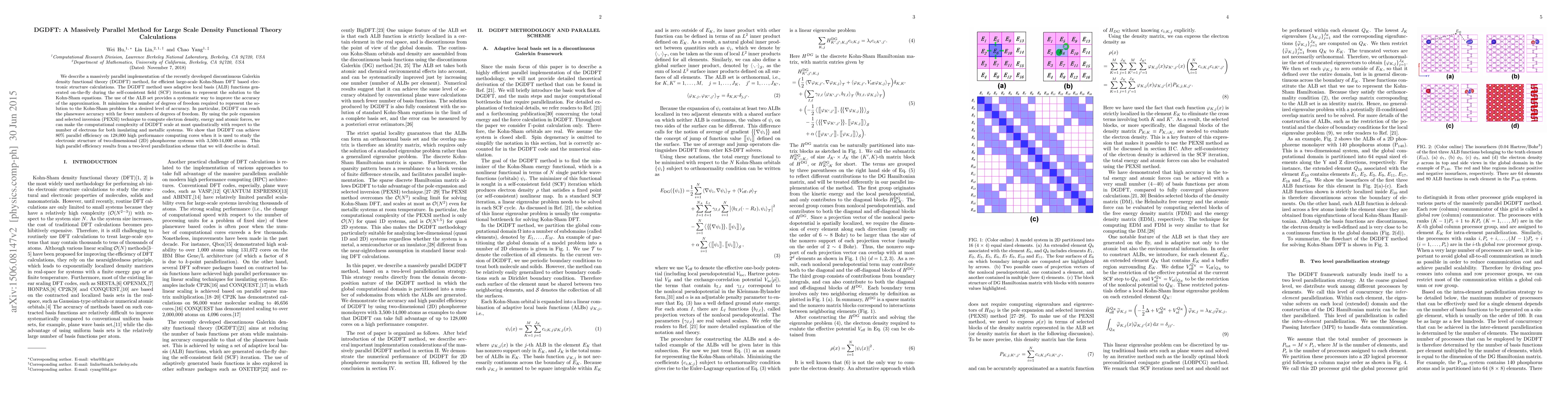 This paper presents a massively parallel implementation of the DGDFT method for large-scale electronic structure calculations, utilizing adaptive local basis functions to enhance accuracy and efficiency. It achieves high parallel efficiency on thousands of computing cores, demonstrating its effectiveness for studying complex systems like 2D phosphorene.