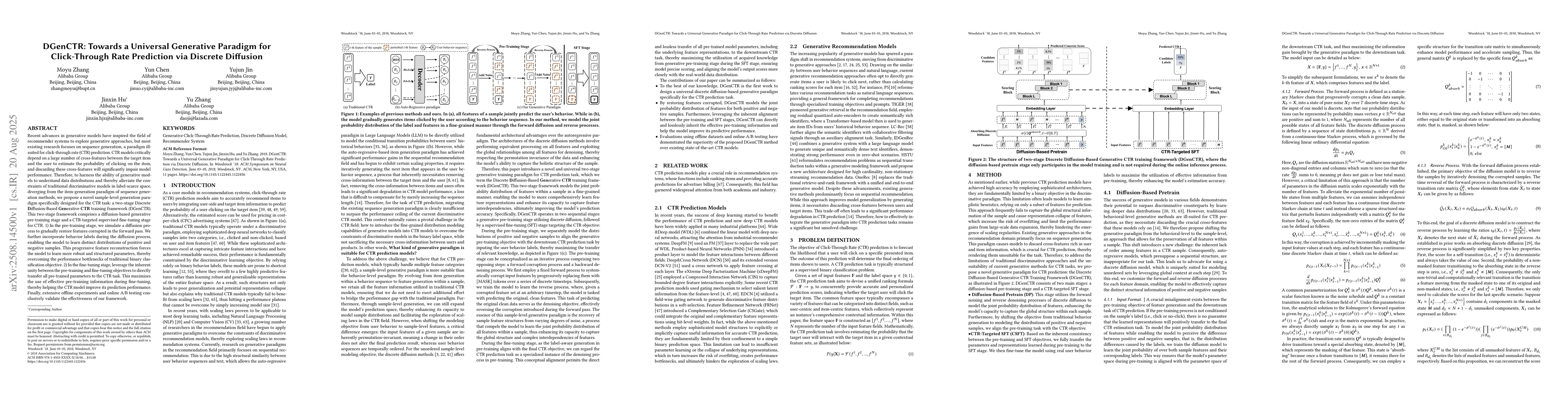 The main technical contribution is the development of DGenCTR, a novel two-stage Discrete Diffusion-Based Generative CTR training framework that combines diffusion-based pre-training and CTR-targeted supervised fine-tuning, effectively capturing feature correlations and learning robust, structured parameters.