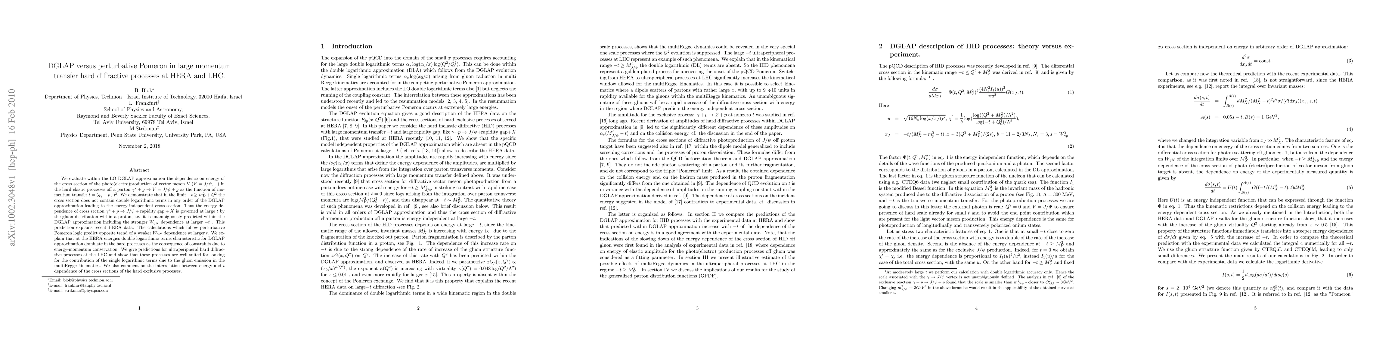 We evaluate within the LO DGLAP approximation the dependence on energy of the cross section of the photo(electro)production of vector meson V ($V=J/\psi,...$) in the hard elastic processes off a parton $\gamma^*+g\to V=J/\psi+g$ as the function of momentum transfer $t=(q_{\gamma}-p_V)^2$. We demonstrate that in the limit $-t \ge m_V^2 +Q^2$ the cross section does not contain double logarithmic terms in any order of the DGLAP approximation leading to the energy independent cross section. Thus the energy dependence of cross section $\gamma^*+p\to J/\psi+{\rm rapidity ~gap} +X$ is governed at large $t$ by the gluon distribution within a proton, i.e. it is unambiguously predicted within the DGLAP approximation including the stronger $W_{\gamma N}$ dependence at larger $-t$ . This prediction explains recent HERA data. The calculations which follow perturbative Pomeron logic predict opposite trend of a weaker $W_{\gamma N}$ dependence at larger $t$. We explain that at the HERA energies double logarithmic terms characteristic for DGLAP approximation dominate in the hard processes as the consequence of constraints due to energy-momentum conservation. We give predictions for ultraperipheral hard diffractive processes at the LHC and show that these processes are well suited for looking for the contribution of the single logarithmic terms due to the gluon emission in the multiRegge kinematics. We also comment on the interrelation between energy and $t$ dependence of the cross sections of the hard exclusive processes.