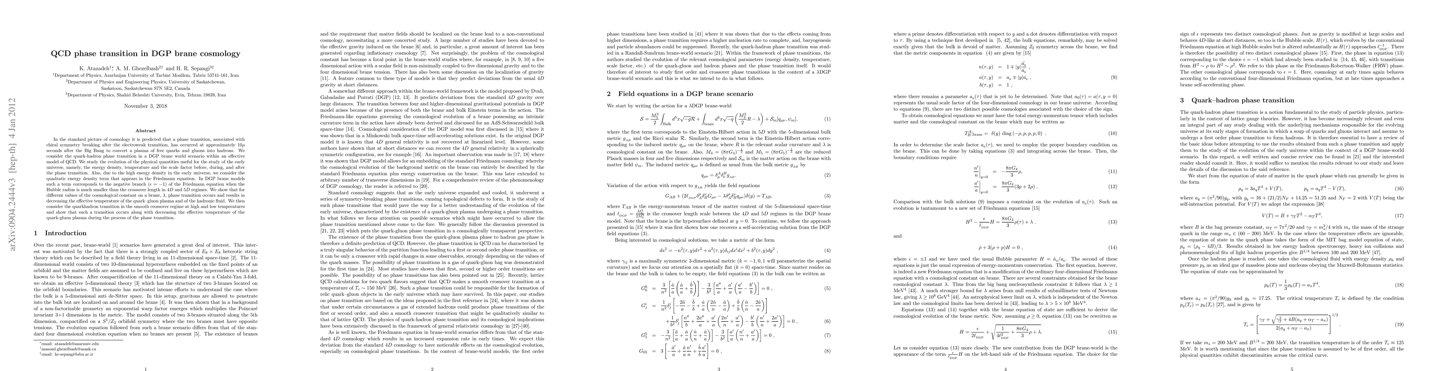 This paper explores the quark-hadron phase transition in the context of DGP brane cosmology, using an effective QCD model to study the evolution of energy density, temperature, and scale factor. It finds that the phase transition results in a decrease in the effective temperature of both quark-gluon plasma and hadronic fluid, influenced by different values of the cosmological constant on the brane.