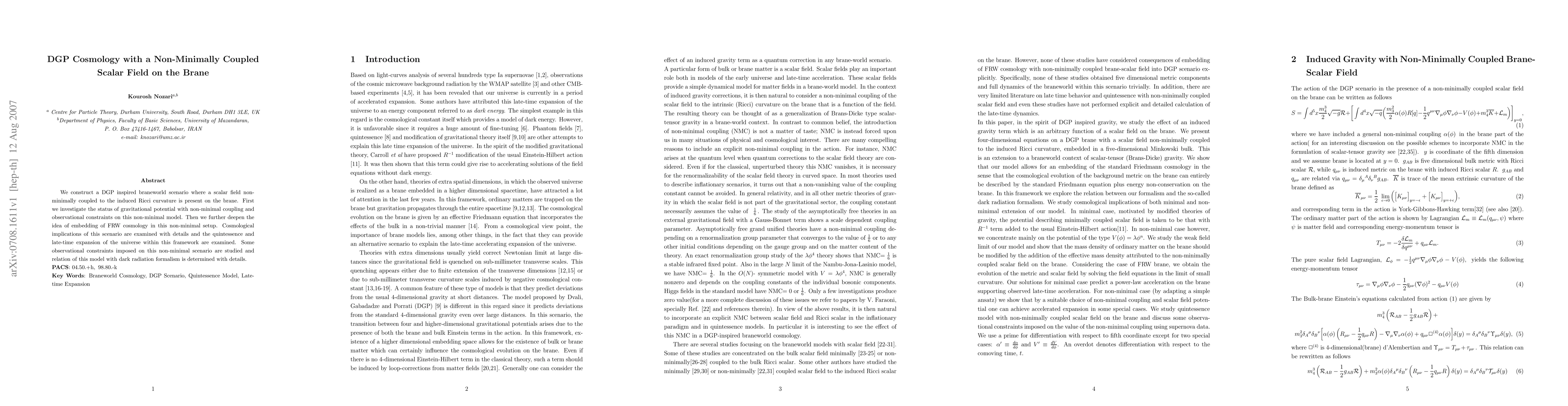 This paper explores a DGP-inspired braneworld model featuring a non-minimally coupled scalar field on the brane, investigating its gravitational potential and observational constraints. It examines the cosmological implications, including quintessence and late-time universe expansion, and relates the model to dark radiation formalism.