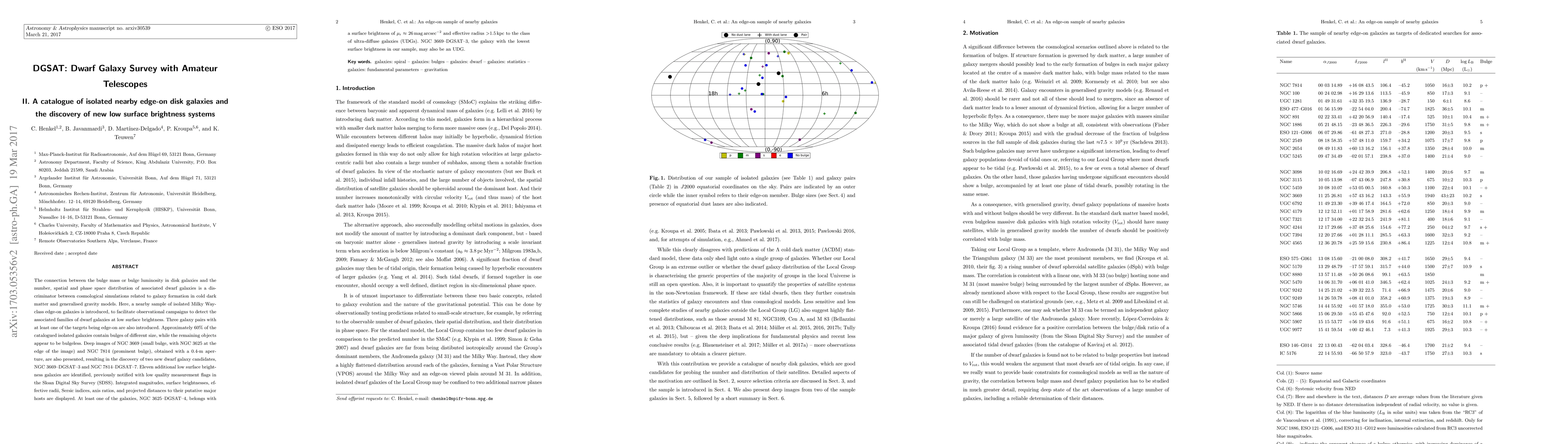 The DGSAT survey catalogues isolated edge-on disk galaxies and discovers new low-surface-brightness dwarf galaxies, providing insights into galaxy formation models and the connection between bulge mass and associated dwarfs.