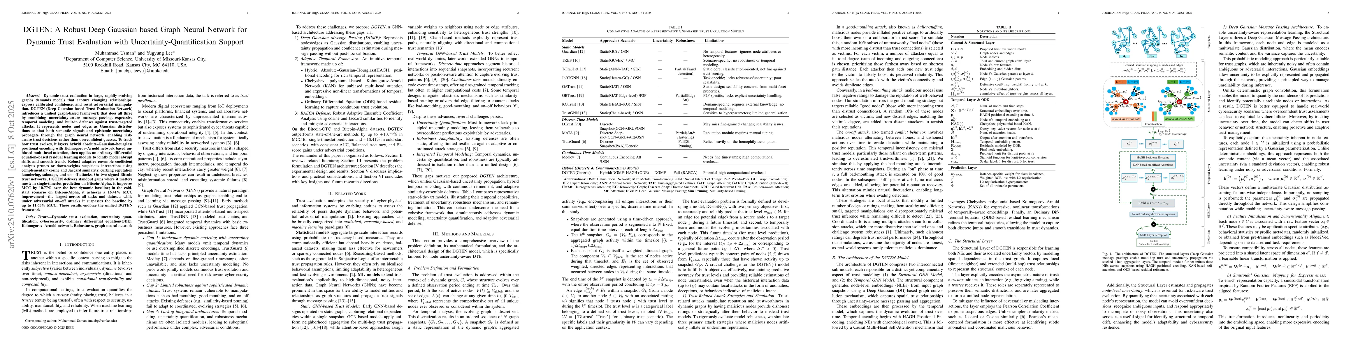This research advances trust evaluation in dynamic networks by introducing DGTEN, which effectively handles adversarial manipulation and temporal dynamics. Its uncertainty quantification provides actionable insights for cybersecurity, enabling both static and dynamic trust analysis in real-world scenarios.