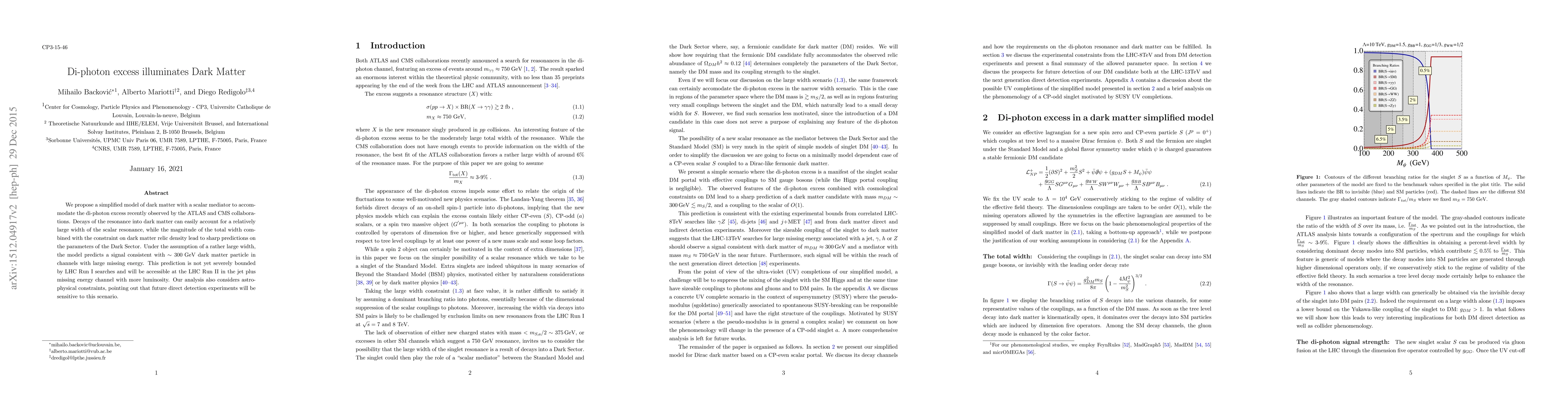 This paper proposes a simplified dark matter model with a scalar mediator to explain the observed di-photon excess, predicting a ~300 GeV dark matter particle in channels with large missing energy. Future LHC and direct detection experiments may provide further evidence for this scenario.