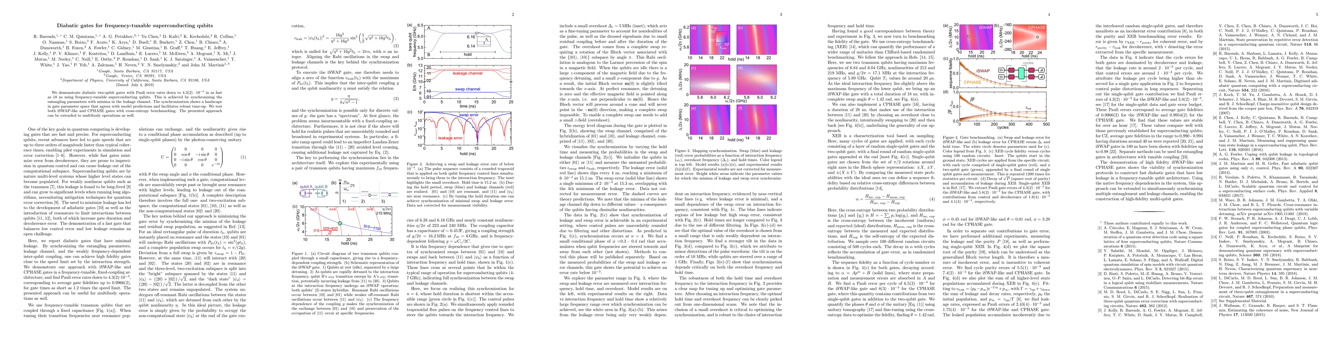 The paper presents diabatic two-qubit gates in frequency-tunable superconducting qubits achieving low Pauli error rates of $4.3(2)\cdot 10^{-3}$ within 18 ns, achieved by optimizing entangling parameters to minimize leakage. The method shows agreement with theoretical models and enables robust gate parameter tuning.