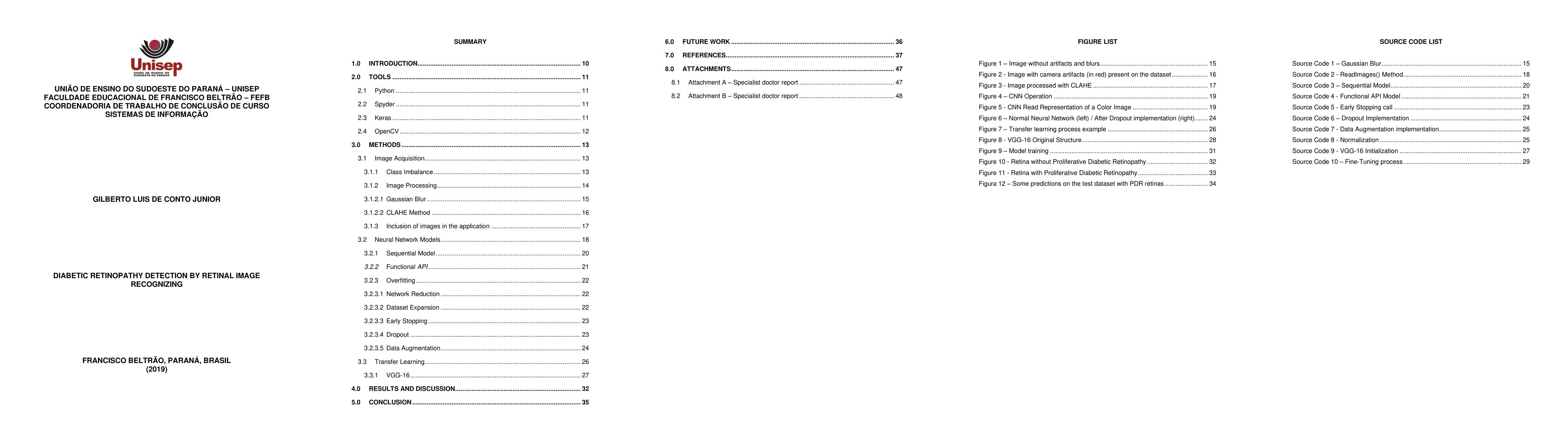 Many people are affected by diabetes around the world. This disease may have type 1 and 2. Diabetes brings with it several complications including diabetic retinopathy, which is a disease that if not treated correctly can lead to irreversible damage in the patient's vision. The earlier it is detected, the better the chances that the patient will not lose vision. Methods of automating manual procedures are currently in evidence and the diagnostic process for retinopathy is manual with the physician analyzing the patient's retina on the monitor. The practice of image recognition can aid this detection by recognizing Diabetic Retinopathy patterns and comparing it with the patient's retina in diagnosis. This method can also assist in the act of telemedicine, in which people without access to the exam can benefit from the diagnosis provided by the application. The application development took place through convolutional neural networks, which do digital image processing analyzing each image pixel. The use of VGG-16 as a pre-trained model to the application basis was very useful and the final model accuracy was 82%.