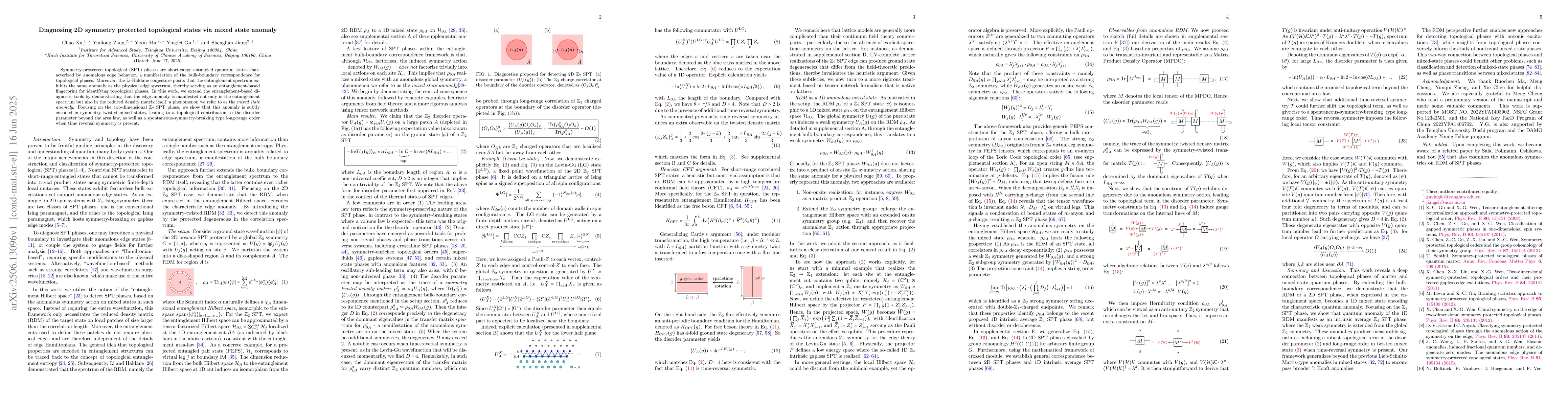 The novelty of this work lies in extending the entanglement-based diagnostic tools for SPT phases by identifying and analyzing the mixed state anomaly, which provides a new perspective on the bulk-boundary correspondence for topological phases.