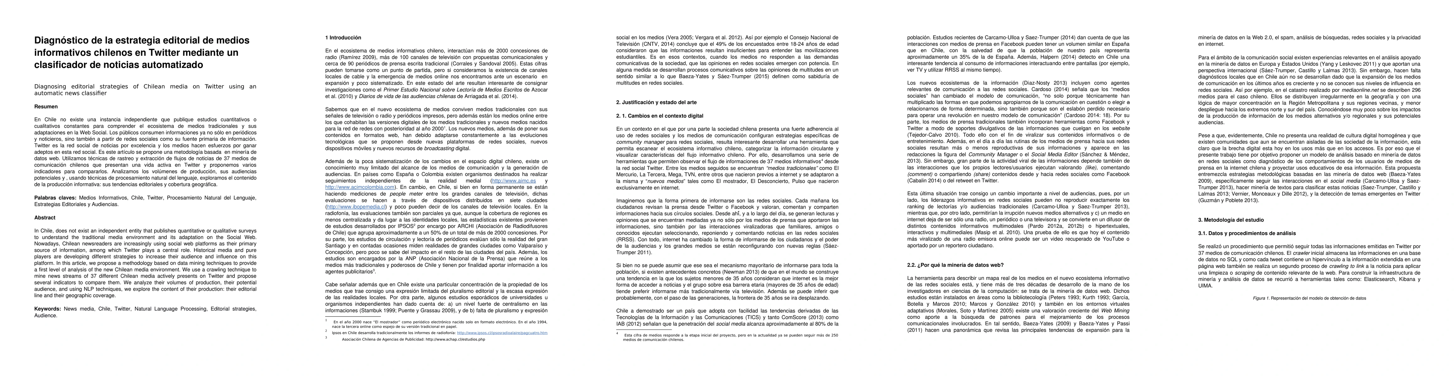 This research paper uses data mining techniques to analyze Chilean media's editorial strategies on Twitter, focusing on audience, content, and geographic coverage. It provides a first level of analysis of the new Chilean media environment, shedding light on how traditional and historical players adapt to social web platforms.
