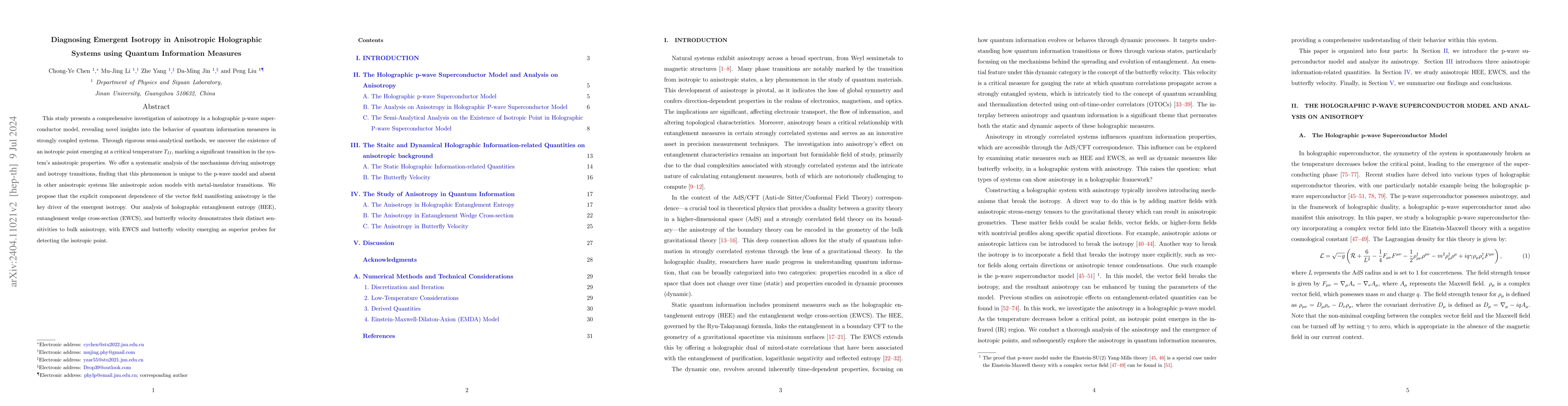 We investigate the behavior of holographic quantum information measures including Holographic Entanglement Entropy, Entanglement Wedge Cross-section, and butterfly velocity in a holographic p-wave superconductor model. We find a novel critical temperature, $T_{II}$, where an isotropic point emerges, signaling a shift from anisotropy to isotropy within the bulk geometry. We find that these measures respond differently to anisotropy, with HEE and EWCS revealing effects at various scales, while butterfly velocity is a precise probe of horizon anisotropy. These findings deepen our understanding of anisotropy in correlated systems, highlight the sensitivity of quantum information measures to spacetime structure, and pave the way for exploring quantum correlations in anisotropic phases.