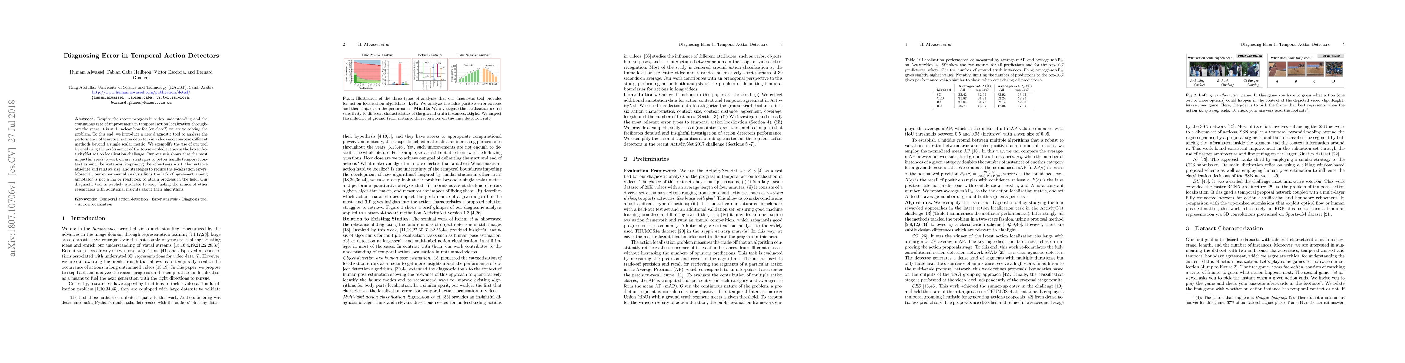 Despite the recent progress in video understanding and the continuous rate of improvement in temporal action localization throughout the years, it is still unclear how far (or close?) we are to solving the problem. To this end, we introduce a new diagnostic tool to analyze the performance of temporal action detectors in videos and compare different methods beyond a single scalar metric. We exemplify the use of our tool by analyzing the performance of the top rewarded entries in the latest ActivityNet action localization challenge. Our analysis shows that the most impactful areas to work on are: strategies to better handle temporal context around the instances, improving the robustness w.r.t. the instance absolute and relative size, and strategies to reduce the localization errors. Moreover, our experimental analysis finds the lack of agreement among annotator is not a major roadblock to attain progress in the field. Our diagnostic tool is publicly available to keep fueling the minds of other researchers with additional insights about their algorithms.