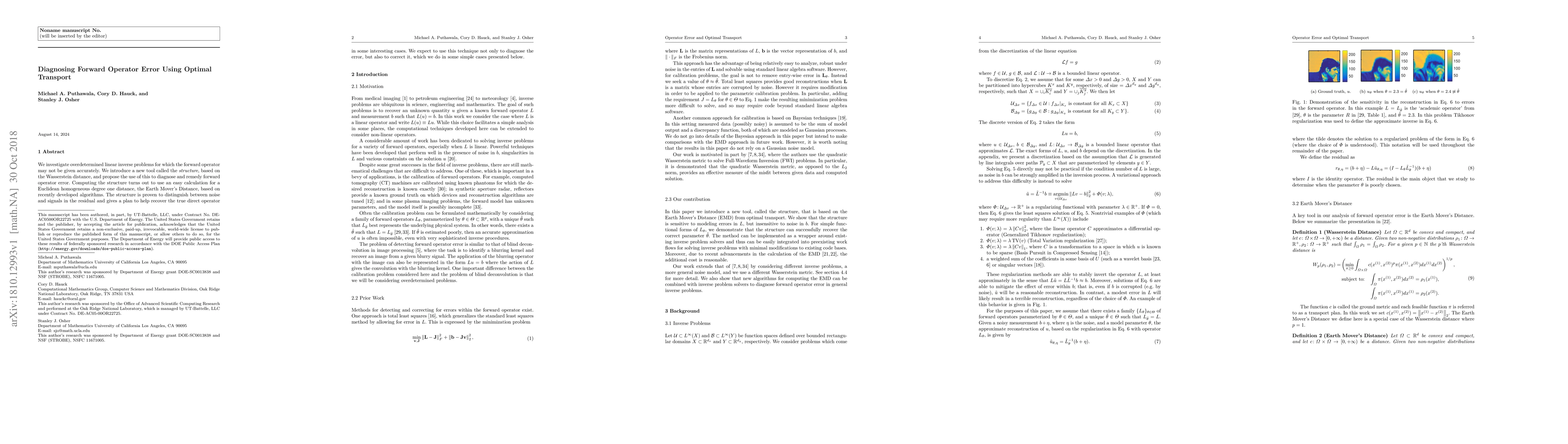 Researchers introduce a new tool to diagnose forward operator error in linear inverse problems, using the Wasserstein distance to distinguish between noise and signals. They also propose a method to correct the error in some cases.