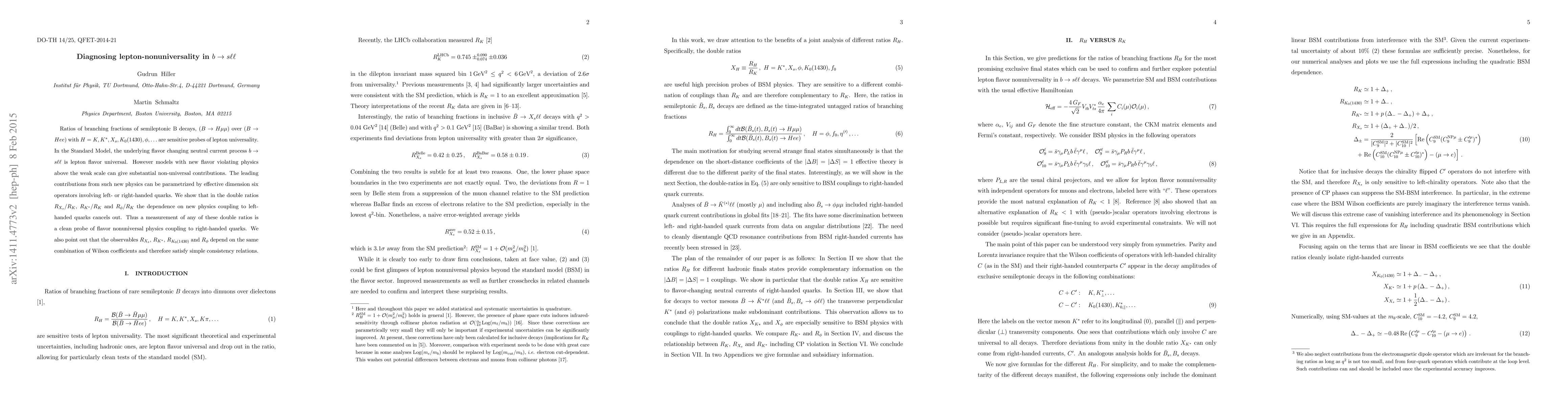 Ratios of branching fractions of semileptonic B decays, $(B \to H \mu \mu)$ over $(B \to H ee)$ with $H=K, K^*,X_s, K_0(1430), \phi, \ldots$ are sensitive probes of lepton universality. In the Standard Model, the underlying flavor changing neutral current process $b\rightarrow s \ell \ell$ is lepton flavor universal. However models with new flavor violating physics above the weak scale can give substantial non-universal contributions. The leading contributions from such new physics can be parametrized by effective dimension six operators involving left- or right-handed quarks. We show that in the double ratios $R_{X_s}/R_K$, $R_{K^*}/R_K$ and $R_\phi/R_K$ the dependence on new physics coupling to left-handed quarks cancels out. Thus a measurement of any of these double ratios is a clean probe of flavor nonuniversal physics coupling to right-handed quarks. We also point out that the observables $R_{X_s}$, $R_{K^*}$, $R_{K_0(1430)}$ and $R_\phi$ depend on the same combination of Wilson coefficients and therefore satisfy simple consistency relations.