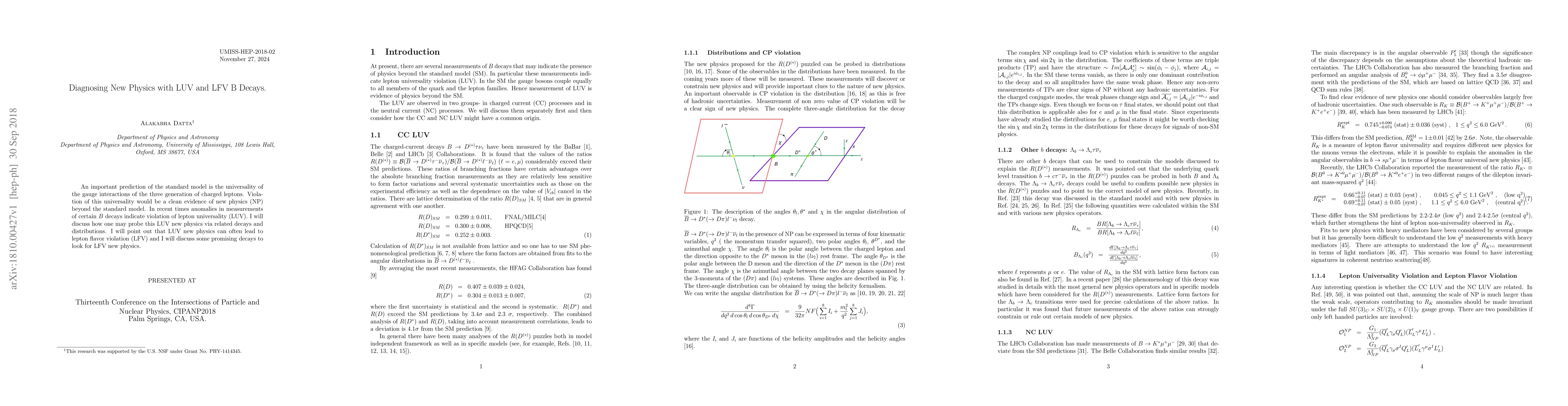 An important prediction of the standard model is the universality of the gauge interactions of the three generation of charged leptons. Violation of this universality would be a clean evidence of new physics (NP) beyond the standard model. In recent times anomalies in measurements of certain $B$ decays indicate violation of lepton universality (LUV). I will discuss how one may probe this LUV new physics via related decays and distributions. I will point out that LUV new physics can often lead to lepton flavor violation (LFV) and I will discuss some promising decays to look for LFV new physics.