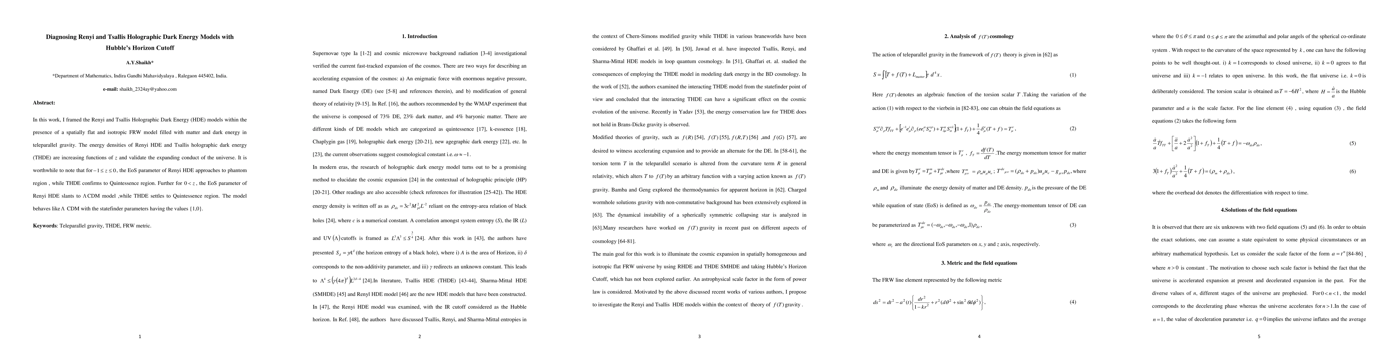 This paper examines Renyi and Tsallis Holographic Dark Energy models within a teleparallel gravity framework, showing that both models support an expanding universe. While Renyi HDE approaches the phantom region for -1<z<0, Tsallis HDE aligns with the quintessence region, and both models behave like LCDM for 0<z.