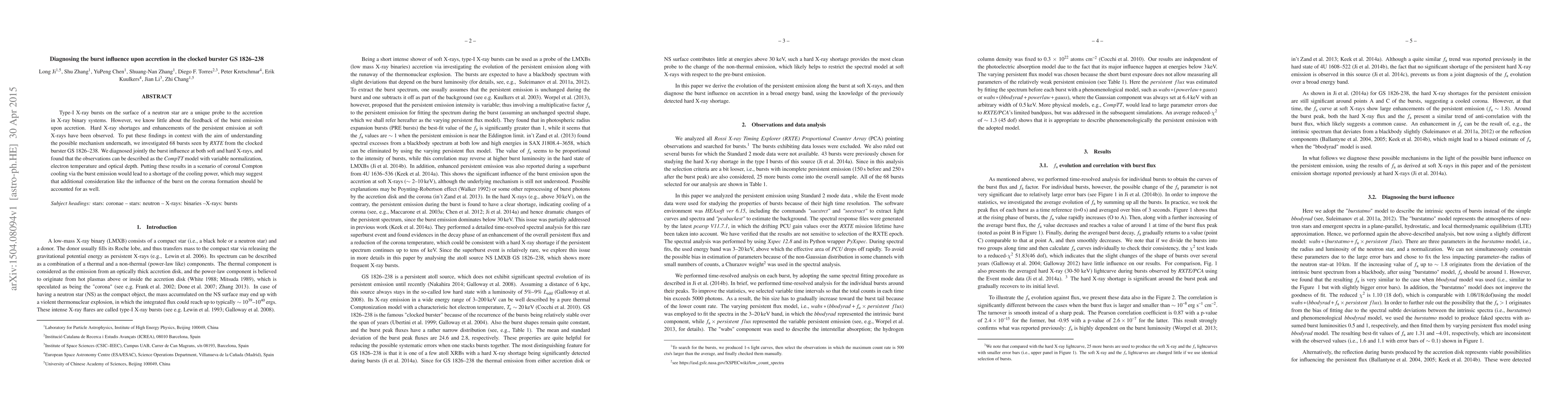Type-I X-ray bursts on the surface of a neutron star are a unique probe to the accretion in X-ray binary systems. However, we know little about the feedback of the burst emission upon accretion. Hard X-ray shortages and enhancements of the persistent emission at soft X-rays have been observed. To put these findings in context with the aim of understanding the possible mechanism underneath, we investigated 68 bursts seen by RXTE from the clocked burster GS 1826--238. We diagnosed jointly the burst influence at both soft and hard X-rays, and found that the observations can be described as the CompTT model with variable normalization, electron temperature and optical depth. Putting these results in a scenario of coronal Compton cooling via the burst emission would lead to a shortage of the cooling power, which may suggest that additional consideration like the influence of the burst on the corona formation should be accounted for as well.