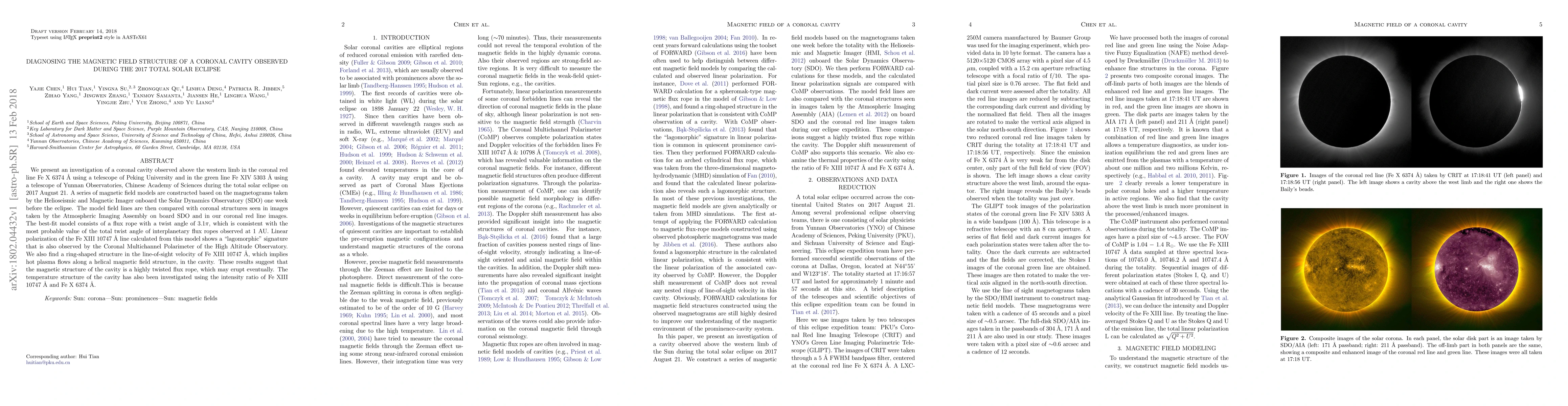 This study investigates a coronal cavity observed during the 2017 solar eclipse, revealing a highly twisted flux rope structure using magnetograms and imaging data. The best-fit model shows a twist angle consistent with interplanetary flux ropes, suggesting potential eruption and supporting observations of a helical magnetic field and temperature variations.